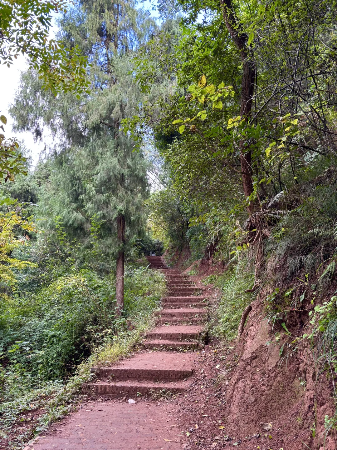 🗺️徒步路线:沿着步道阶梯上山,路迹明显,只有一条路线。前半段路植被茂盛,遮荫不晒人;后半段路视野开阔,一览众山小~
