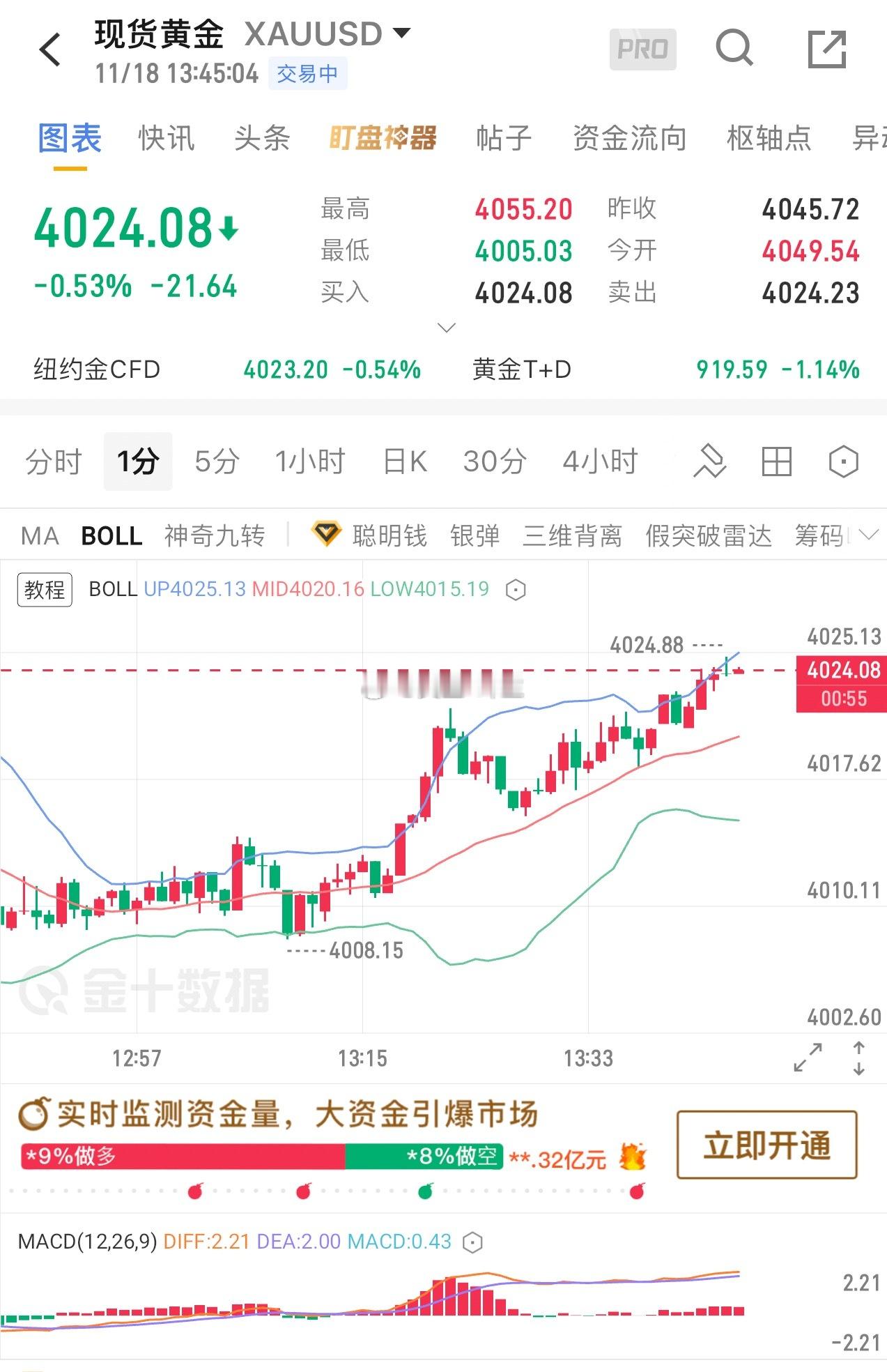 兄弟们,属于我们丰收的时刻到来啦黄金4010、4006多单,离场4024,共拿下320点的成果。虽然行情在我们多单进场后有所回撤,但始终都没有跌破4000关口附近支撑,反而触及该区域支撑迎来反弹行情,我们的坚持终会带给我丰厚的成果。