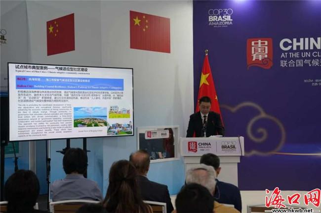 记者从海口市生态环境局了解到,近日在巴西贝伦召开的联合国气候变化大会(COP30)会场中国角,由生态环境部、中国气象局指导,生态环境部环境发展中心等单位主办的适应气候变化中国方案边会公布了《气候适应城市典型案例》,海口市气候适应型社区新路径和清凉城市样板2个案例,作为15个全国优秀案例展示适应气候变化“中国方案”实践。同时,北港岛生态IP“鲸北北”和渔网手工袋作为“中国礼物”在边会上限量赠送。