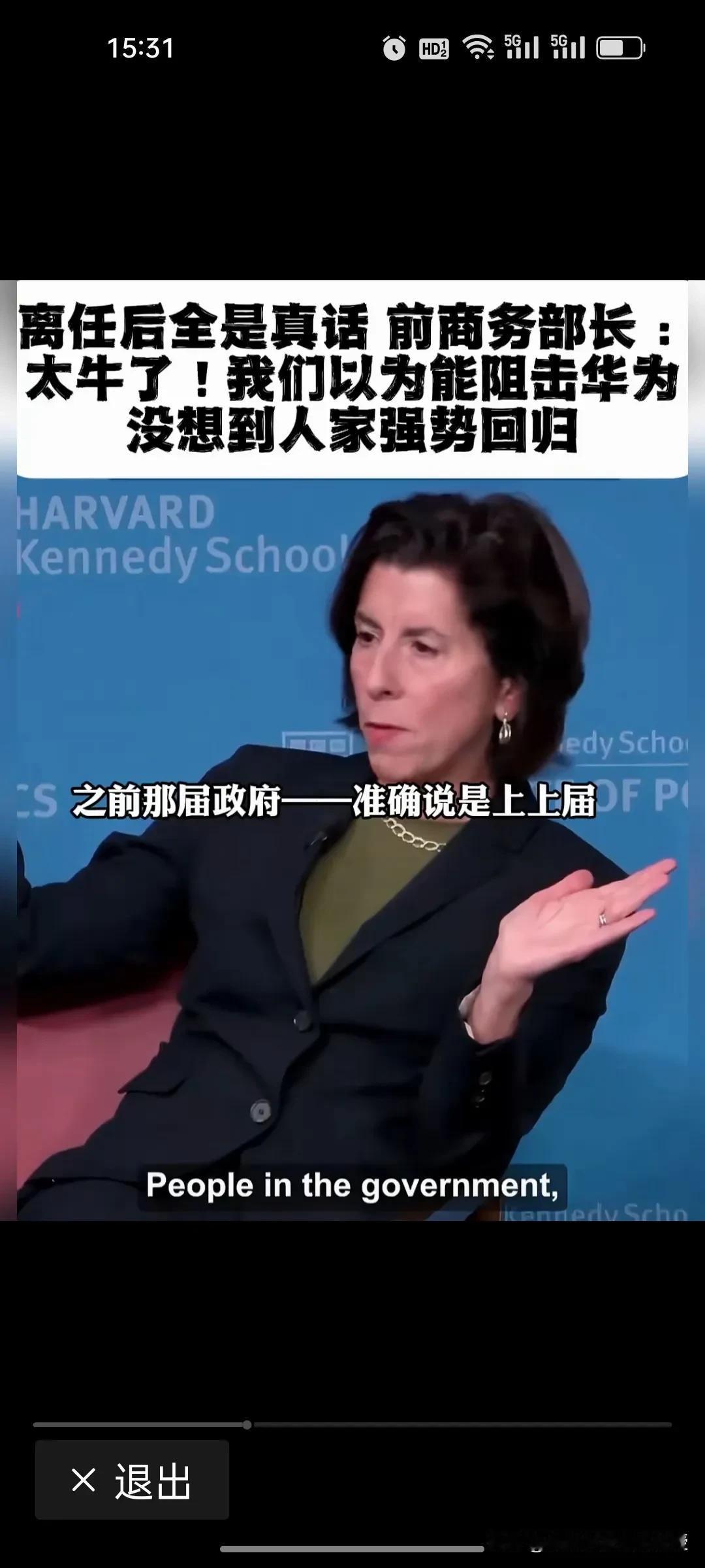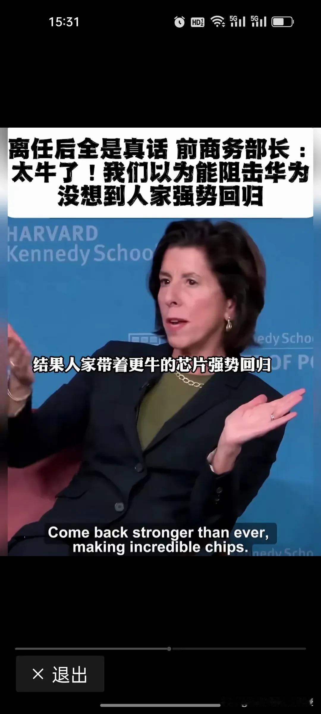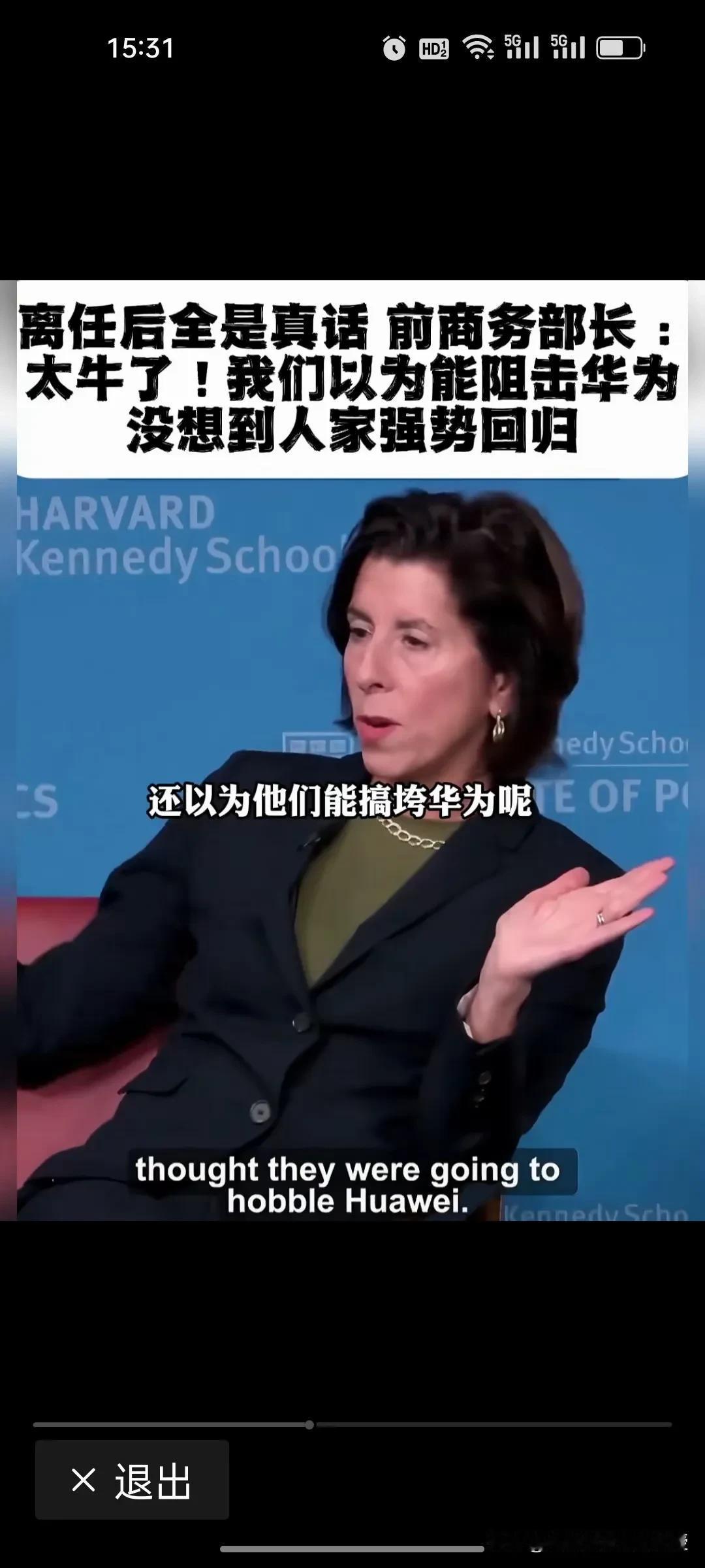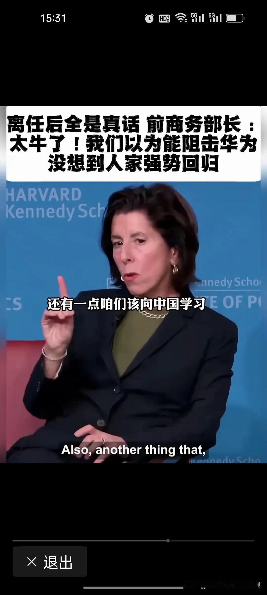 去年曾说“北京一按键,就能让在美国开的中国汽车全部熄火”的美国前商务部长雷蒙多,近期在哈佛大学说了一番大实话。 她说上上届政府以为能搞垮华为,结果人家带着更牛的芯片强势回归。中国舍得投资人才,而美国连像样的劳动力培养体系都没有,中国有非常有效的产业政策。 雷蒙多在拜登政府任期内,曾经要调查中国产的汽车以维护国家安全,如今卸任后,没有了政治枷锁,实际上,她对中国是无比钦佩的。