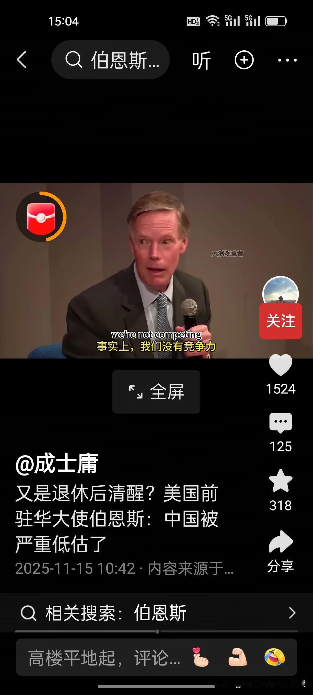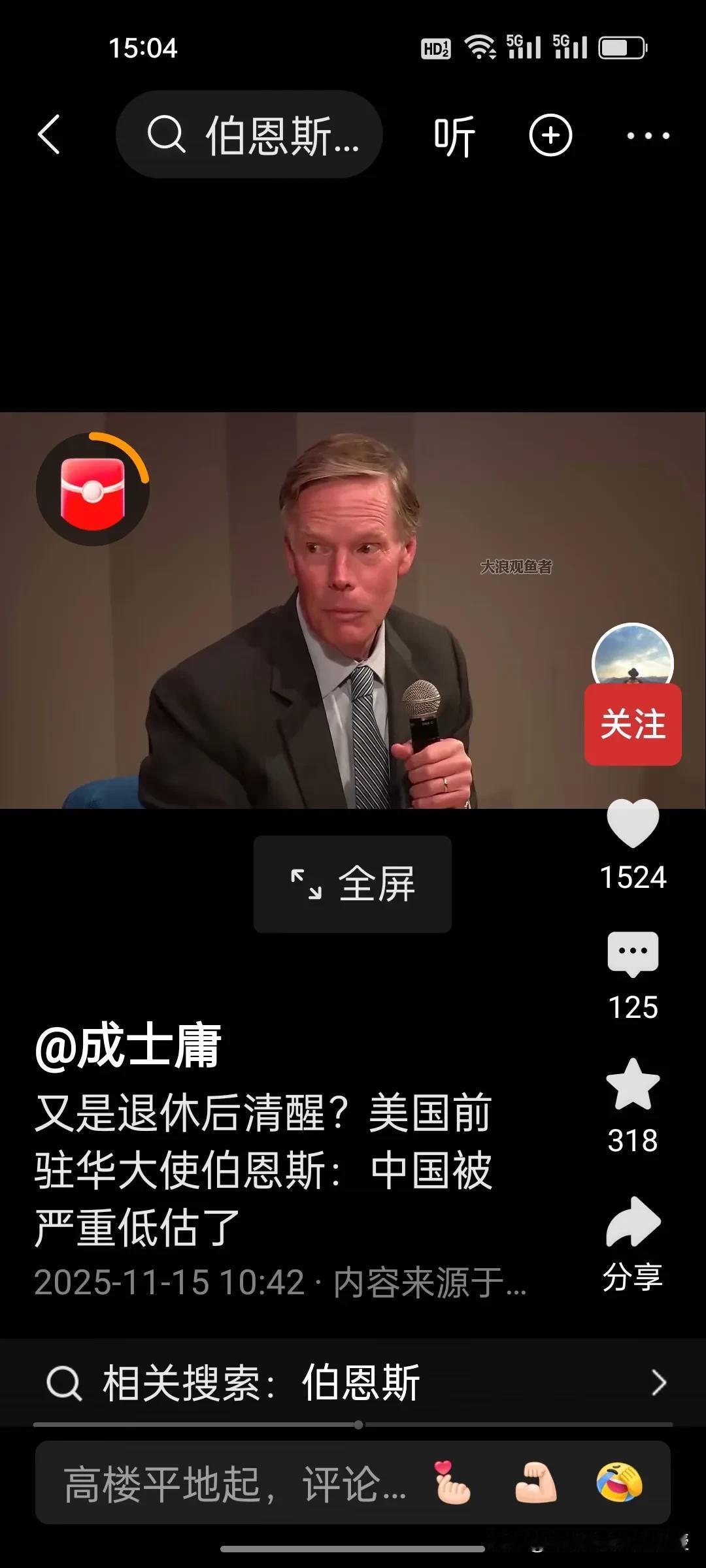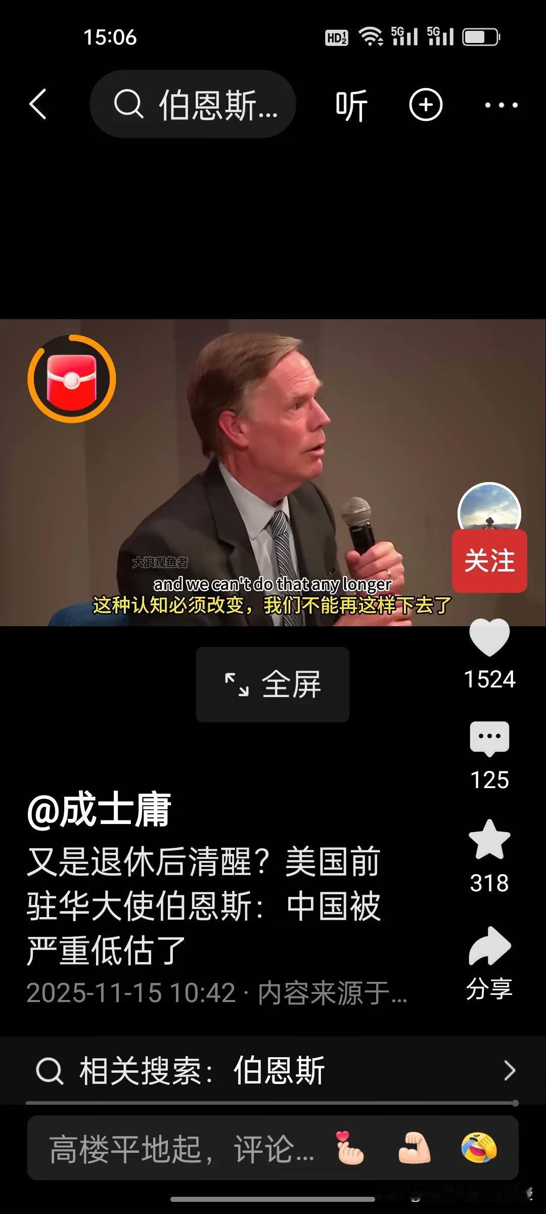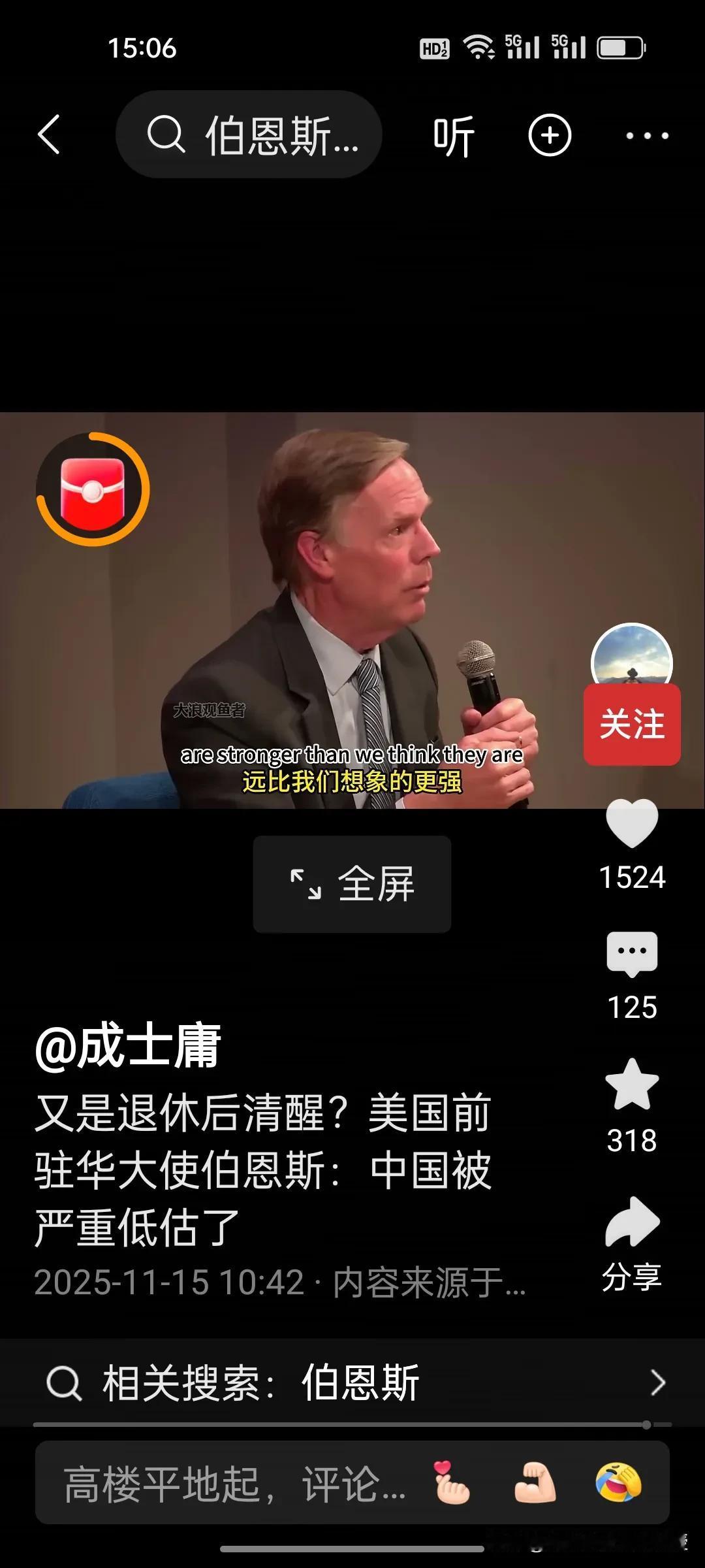 特朗普难得清醒啊!特朗普接受媒体访谈时称,美国没有人才,总不能拉个人去造导弹吧? 看下图,跟特朗普观点一致的还有美国前驻华大使伯恩斯,他说中国被严重低估了,美国的科技领军人就是华裔,美国没有竞争力,中国的军事和科技实力比他们想象中要强。 另外,美国前商务部长雷蒙多近期在哈佛大学演讲时说,“中国的华为很强大,上届美国政府还以为能打压华为,结果华为强势归来,造出了令人惊叹的芯片。” 美国政客其实个个心里都门清美国的现状,只不过在任期内能诚实说出来的只有特朗普而已。特朗普心里敬畏强者,一直对中国以“G2”相称。