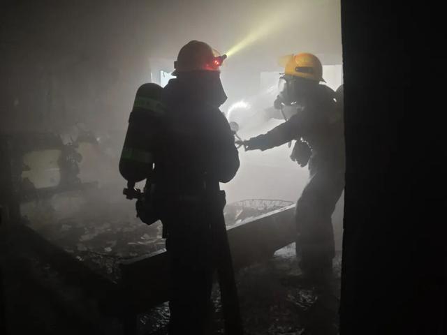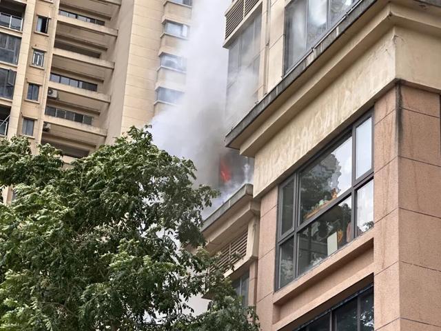 消防员到场前,物业已联系户主获取房门密码,开门后,大家尝试扑救但收效甚微。消防员到场后,立即对现场实施警戒,随后分两组展开救援。