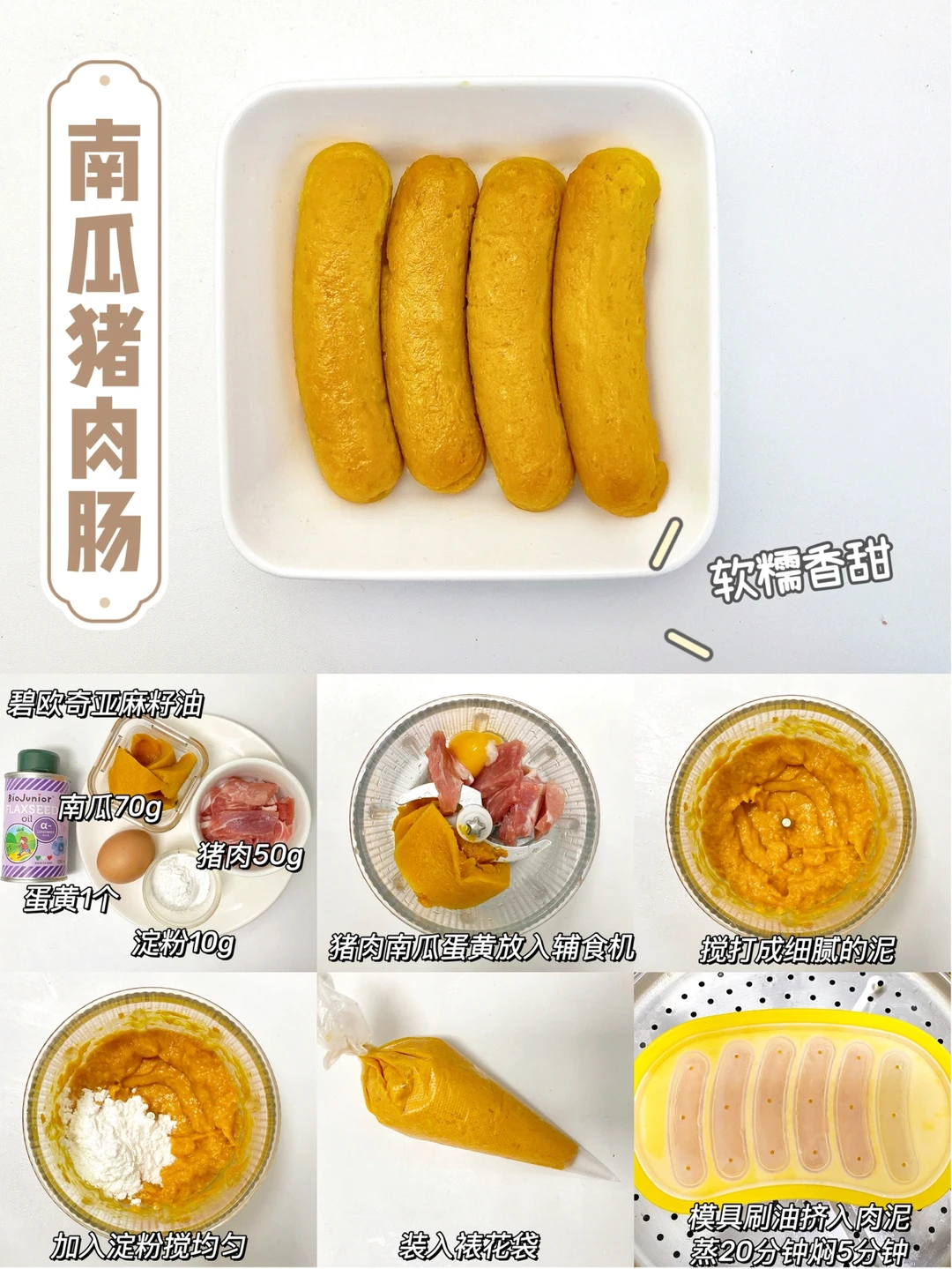 ☑️食材:南瓜70g、猪肉50g、蛋黄
