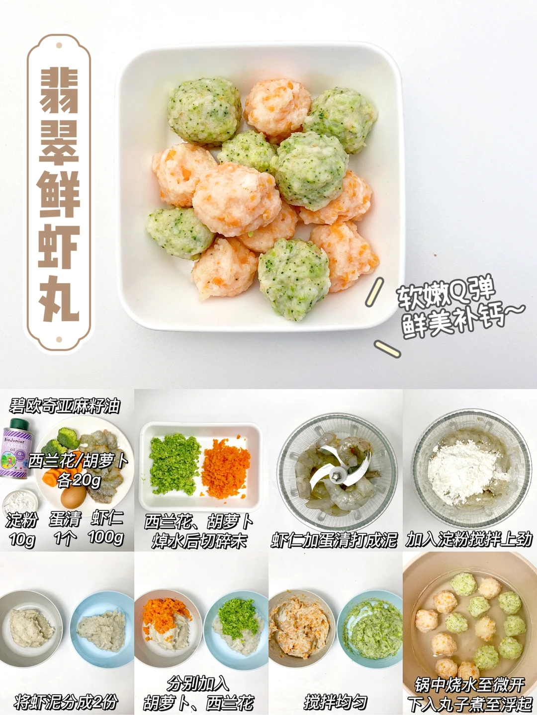 ☑️食材:虾仁100g、蛋清、西蓝花/胡萝卜各20g
