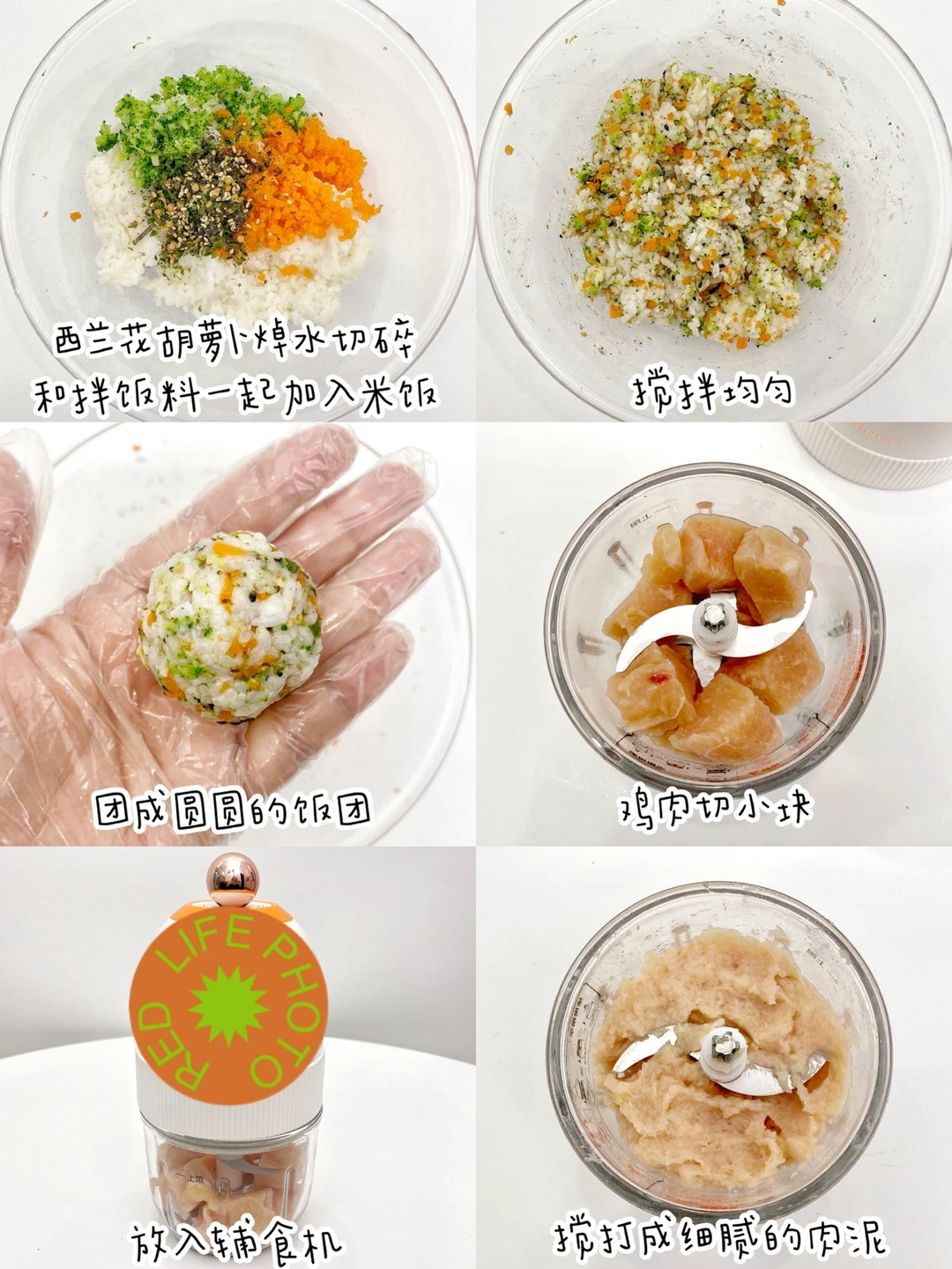 2⃣️鸡肉切成小块放入辅食机达成细腻的肉泥。家里有吃辅食的宝宝就要准备好辅食机啦,几乎是天天都会用到的。