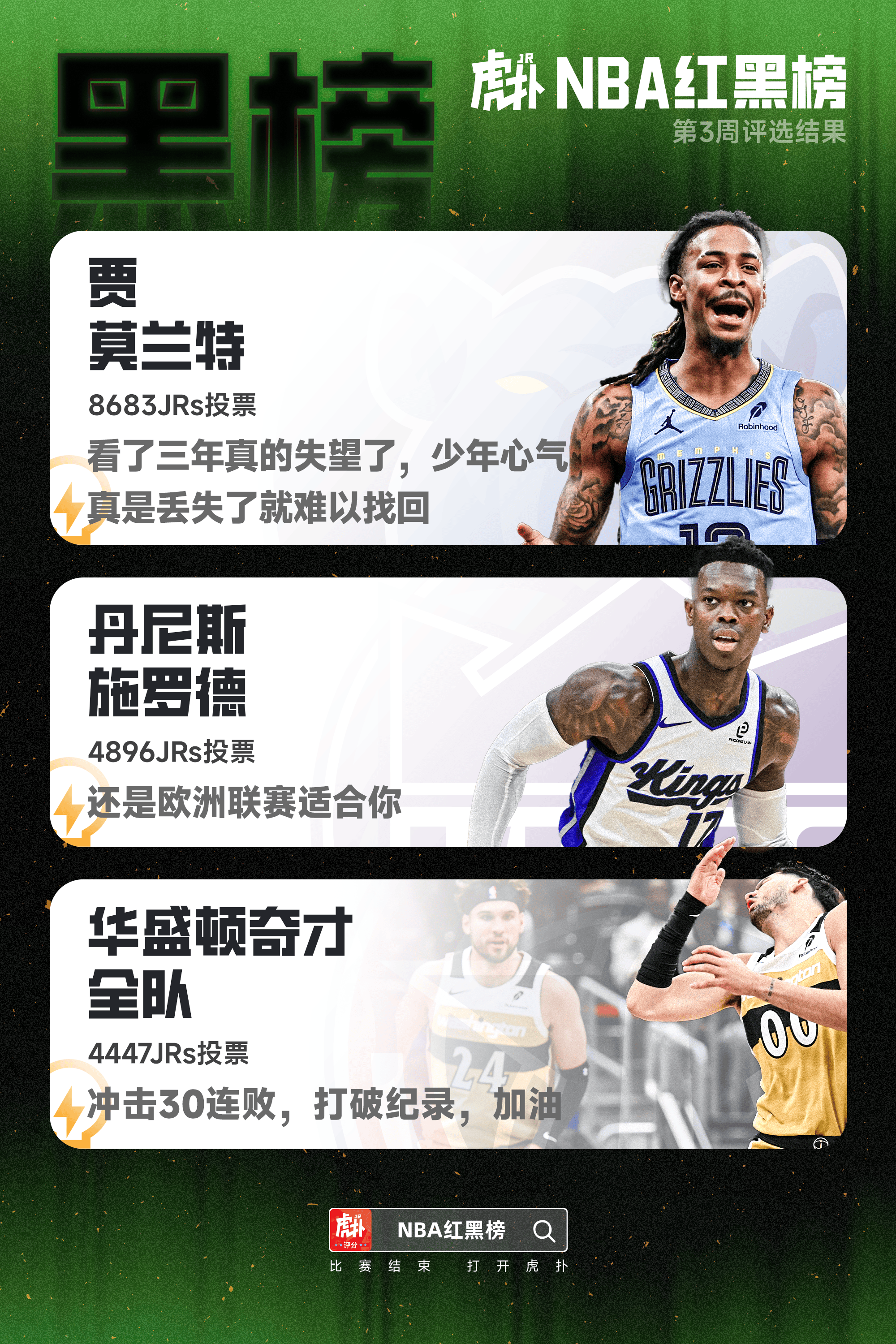 JRs,你们认为上周的黑榜球员与你心中的结果相符吗?在评论区留下你们的看法吧!