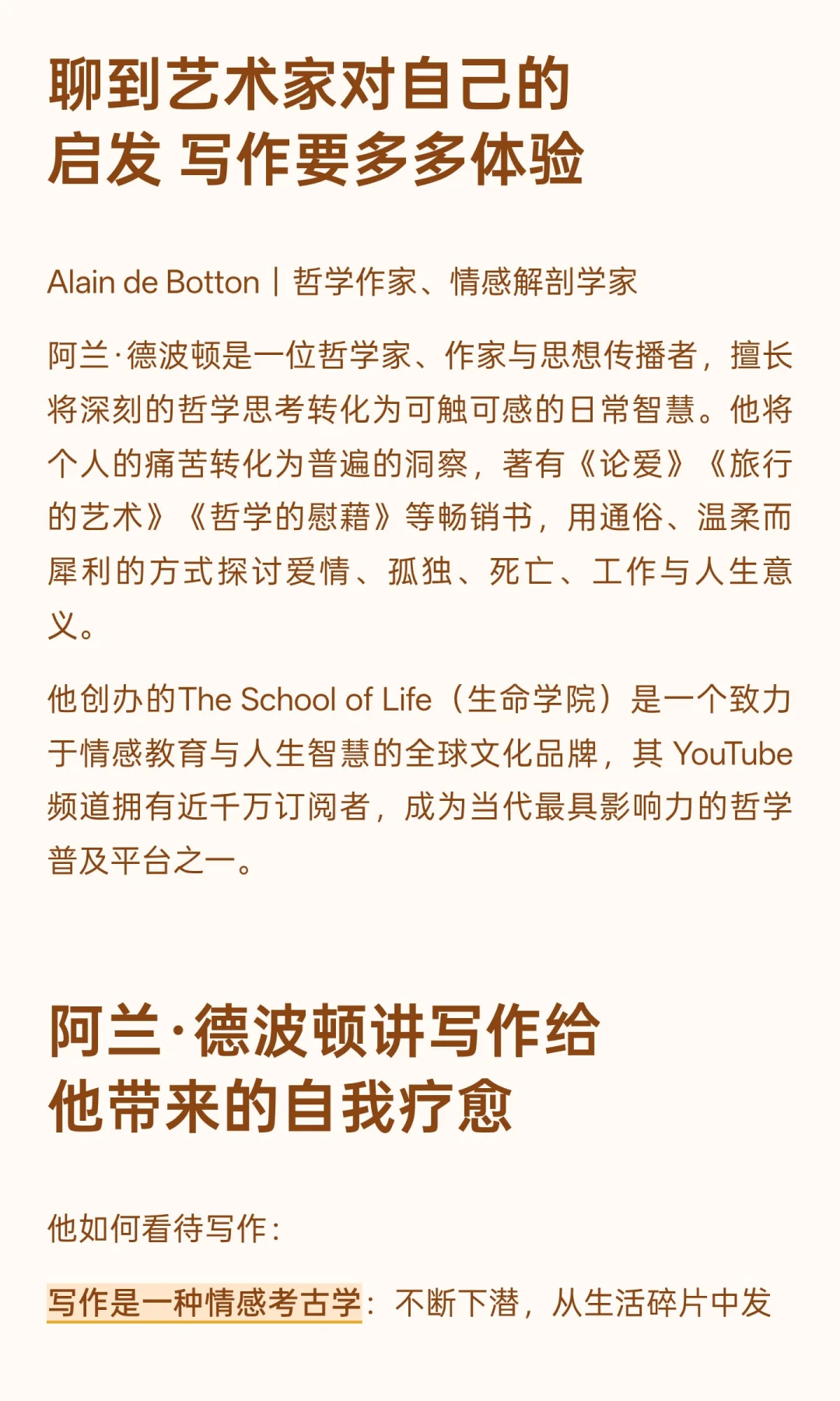 阿兰·德波顿谈写作:天才的思想与常人并无