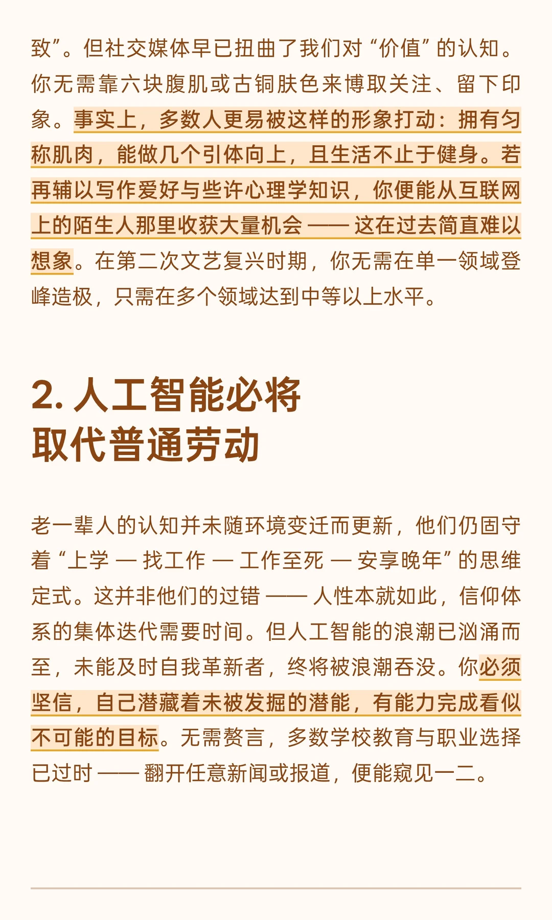 正如他所说:社交媒体是你最强大的武器,是链接全球前沿科技与顶尖头脑的桥梁。创作者,便是新时代的文艺复兴人;是去中心化的教育载体;更是经济发展的新引擎。