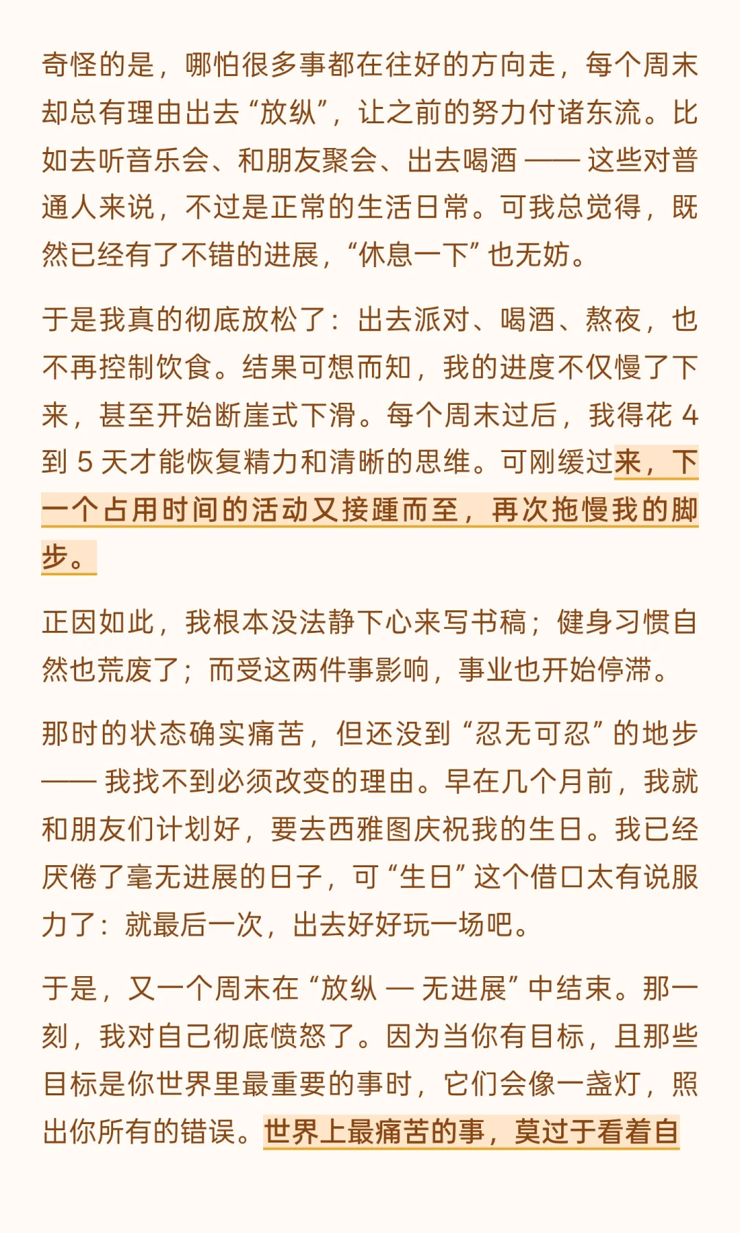 我 21 年生日前就是这样 —— 写书稿卡壳、健身摆烂、事业停滞,直到某次放纵后彻底愤怒: