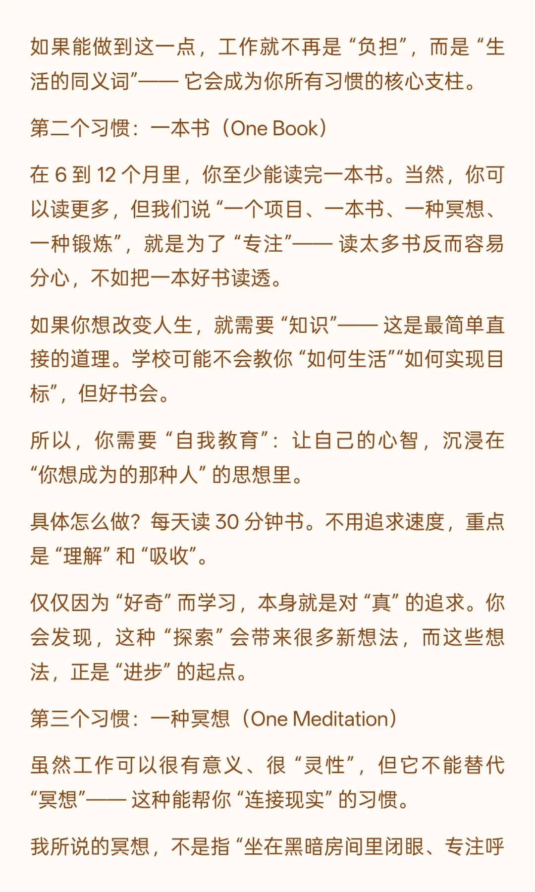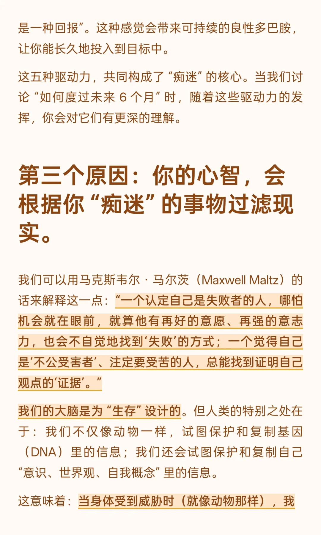 大脑是 “用进废退” 的!你越专注一个目标(比如死磕一个项目),大脑越会形成 “目标回路”,比断断续续努力快 10 倍!