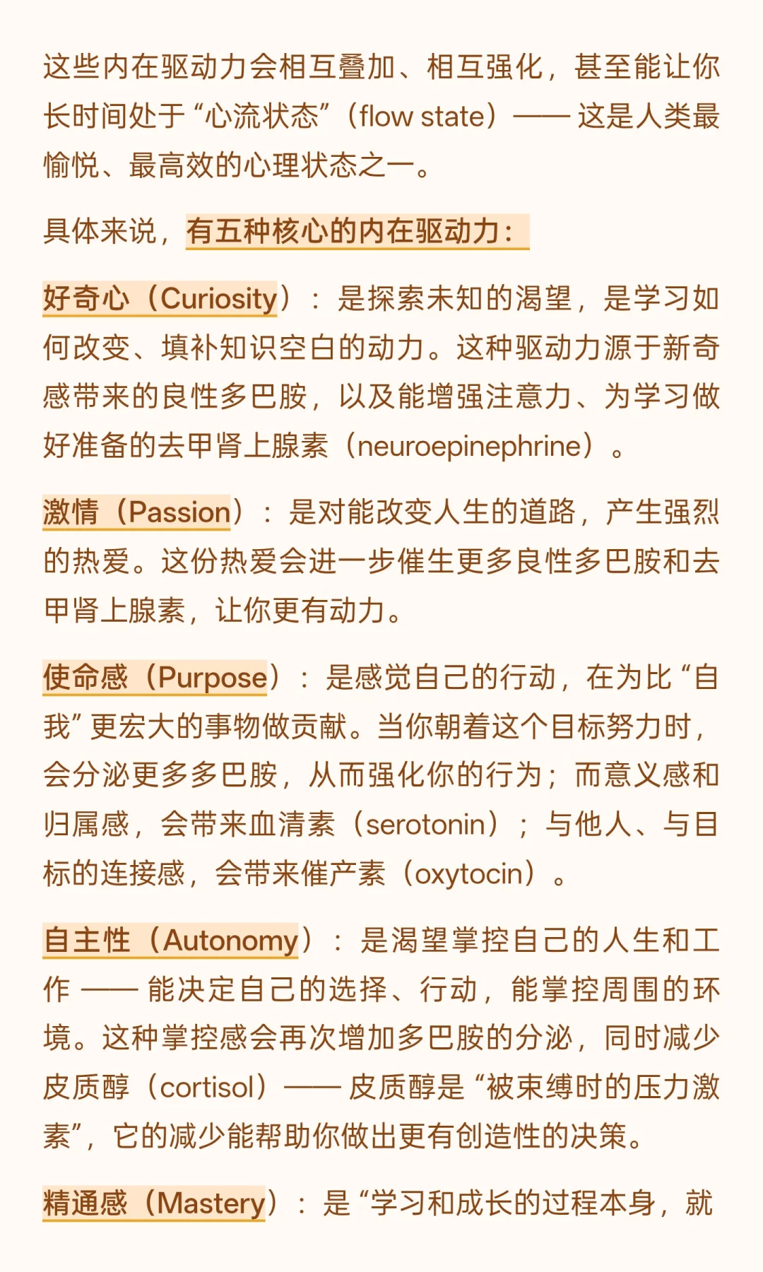 而且靠 “内在驱动”(好奇、热爱、使命感)比靠别人催、靠奖励有用多了 —— 心流状态一上来,做事根本不觉得累!