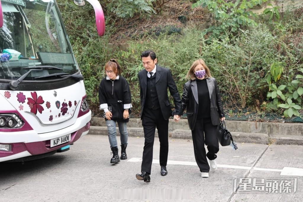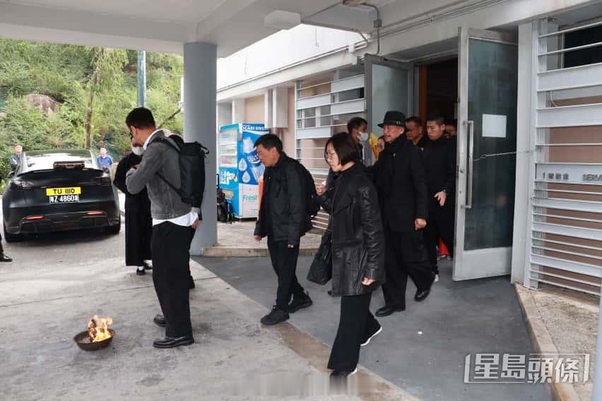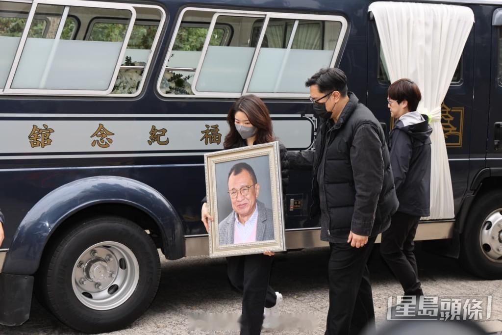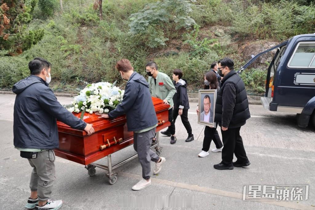许绍雄出殡丨化轻烟告别尘土 女儿许惠菁捧遗照 佘诗曼眼红红贴身照顾契爷遗孀 | 星岛头条资深艺人许绍雄10月28日因病离世,昨日(17日)于大围宝福纪念馆设灵,今日(18日)进行大殓仪式,灵柩将移往富山火葬场火化,现场有警方在馆外设传媒采访区,黎芷珊继续在现场打点。苗侨伟欧阳震华等扶灵12时40分,许绍雄的灵柩由宝福纪念馆移往富山火葬场,其生前好友杜燕歌、曾伟明、麦长青、罗乐林、欧阳震华、关礼杰、苗侨伟、阮兆祥扶灵,灵柩移上灵车,由许绍雄女儿许惠菁捧着遗照上车随行,而遗孀龙嬿而跟在行列后方,由女婿搀扶,契女佘诗曼贴身照顾。灵车抵达火葬场,许惠菁由老公陪同步下灵车进入礼堂。火葬仪式结束,遗孀龙嬿而由儿子俊贻搀扶步出礼堂跨过火盆,然后登上七人车离开,而佘诗曼等到场送别的艺人则登上大巴,佘诗曼与梁靖琪一同步出,同样神色哀伤,未有停步直接登车。许绍雄高海宁情如父女与许绍雄因剧集而以父女相称的高海宁,一早便到场向前辈道别,一身黑的高海宁于9时50左右离开,至于麦长青、罗乐林、欧阳震华、关礼杰、陈敏之、方平与太太鲍起静、余安安亦陆续到场,向许绍雄致意。佘诗曼与梁靖琪、苗侨伟与戚美珍相继现身。