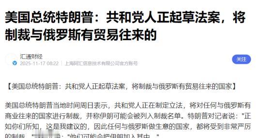 特朗普:将对任何与俄罗斯有商业往来的国家实施制裁 据彭博社报道,特朗普宣布,共和党人正在推进一项法案,将对任何与俄罗斯有商业往来的国家实施制裁。   特朗普宣布这一消息时,特意选择在一场共和党内部战略沟通会上,参会者包括党内多名资深议员和政策顾问。他在发言中没有迂回,直接亮明态度,表态直接且态度坚决。   这位美国总统强调,共和党推进这项法案的初衷,是为了对俄罗斯施加“前所未有的持续压力”,直至达成他们预期的政治目标。   细心的观察者很快发现,这一制裁计划的推出,恰好发生在特朗普临时取消与俄罗斯总统普京会晤之后。原本双方约定在匈牙利布达佩斯举行关于乌克兰问题的峰会,可就在会晤前夕,特朗普突然对外宣布暂缓行程。   他在社交媒体上表示,自己认为“时机不对”,继续会晤“无法达成目标”,后续会选择合适时间再与普京见面。将这些动作串联起来不难发现,推进该项法案更像是对取消会晤的后续强硬举措,每一步都经过了周密安排。   北约秘书长吕特随后造访白宫,他在与特朗普会面后向媒体透露,两人一致认为有必要对俄罗斯经济施加“持续压力”。   吕特表示,此次访美是为了商讨结束乌克兰冲突的方案,但目前没有成熟的和平计划可摆上谈判桌。这一表态从侧面印证了,这项跨国制裁法案并非特朗普个人的突发想法,而是美国与北约盟友在对俄策略上的核心共识之一。   随着法案细节逐步披露,外界才充分认识到该法案的覆盖范围之广。法案明确指出,制裁核心将瞄准能源和金融两大关键领域,俄罗斯石油公司和卢克石油公司这两大能源巨头被列为首要制裁对象。   彭博社的数据显示,这两家企业的原油出口量合计占俄罗斯原油出口总量的近五成,2024年的产量更是占到俄罗斯全国总产量的63%,其出口收入对俄联邦预算的贡献度高达24%。这意味着一旦制裁生效,将直接掐断俄罗斯经济的关键命脉。   美国财政部长贝森特在接受福克斯商业新闻台采访时,进一步解释了制裁的具体措施。他表示,美国将冻结这两家企业在美所有资产,同时全面禁止美国企业及个人与其开展任何交易。   更严厉的条款在于,法案包含二级制裁内容,威胁要对任何“协助俄罗斯军事工业基础”的外国金融机构采取行动。   这一条款直接将矛头对准了所有与这两家俄企有业务往来的国家和实体,从印度的炼油厂到中国的金融机构,都可能被卷入这场制裁风波。   贝森特还表示,特朗普对阿拉斯加会晤后俄乌谈判未能取得进展感到极为失望。   他透露,特朗普曾私下提及“每次我和普京沟通后,情况都没有改善,这次没必要浪费时间了”。这位财政部长强调,美国财政部已做好准备,“在必要时采取进一步行动”,为特朗普推动解决俄乌冲突提供支持。   特朗普本人也向媒体强调,这次制裁的规模“巨大”,他希望制裁不会持续太久,能推动俄乌冲突尽快平息,还表示“是时候了,我们已经等了很久”。   欧盟随即采取了同步行动,在特朗普宣布法案后,欧盟成员国迅速达成一致,推出了第19轮对俄制裁方案。根据欧盟委员会的声明,本轮制裁首次将俄罗斯液化天然气纳入进口禁令,还将俄罗斯原油价格上限下调至每桶47.6美元。   俄罗斯石油公司和俄罗斯天然气工业石油公司都将面临全面交易禁令,欧盟还扩大了对俄金融机构的交易限制,首次将加密货币平台纳入制裁范围。   欧盟委员会主席冯德莱恩表示,这是“大西洋两岸向侵略者发出的明确信号”。   制裁消息公布后,全球市场随即出现剧烈波动。10月23日当天,国际油价大幅上涨,布伦特原油期货价格单日涨幅达5.2%,收盘价突破每桶65美元;西德克萨斯中质原油(WTI)涨幅达4.8%,报60.90美元/桶,创下10月10日以来的新高。   市场分析机构Vanda Insights创始人范达娜·哈里分析指出,制裁直接切断了俄罗斯石油巨头与国际金融体系的联系,全球供应链需要重新调整以适应这一变化。   供应链调整的代价很快在各个环节显现。欧盟直接将117艘涉嫌规避制裁的油轮列入黑名单,同时限制了俄外交官在申根区内的活动。印度炼油厂高管透露,受制裁影响,俄罗斯原油无法通过传统渠道运输,印度9月份的俄油进口量已环比下降18%。   中国作为俄罗斯最大的原油进口国,2024年的进口量达到7100万吨,其中40%来自被制裁的俄罗斯石油公司和卢克石油公司,短期内原油供应稳定性将面临严峻挑战。   市场避险情绪同时推高了黄金价格。10月23日当天,现货黄金价格盘中涨幅一度达0.85%,升至4137美元/盎司,创下近两周以来的新高。市场分析师沃伦·帕特森分析称,地缘政治的不确定性通常会提升黄金的吸引力,当前投资者都在为全球局势进一步恶化做准备。