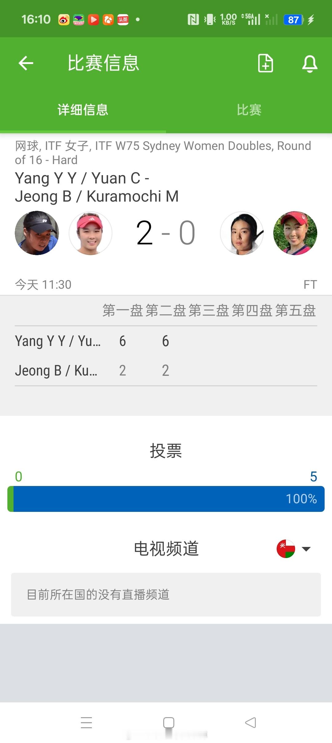 【悉尼W75】田方然、袁程依依组合晋级八强