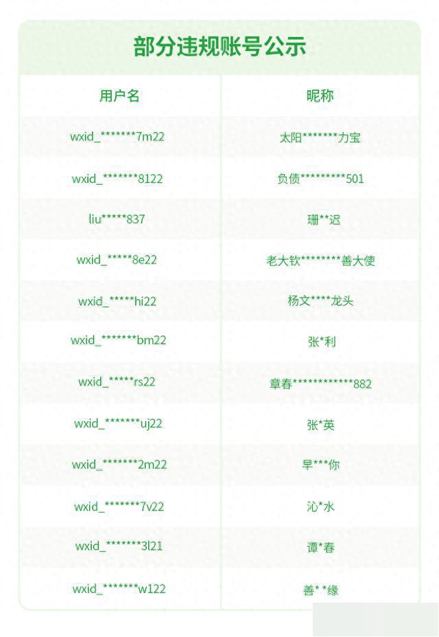 上述行为一经发现核实,平台将依据国家相关法律法规以及《腾讯微信软件许可及服务协议》《微信个人账号使用规范》等平台协议及规则,视违规严重程度对相关账号进行阶梯式处理,多次违规者有可能永久限制登录,对确认违规的微信群,进行停用群功能处理。