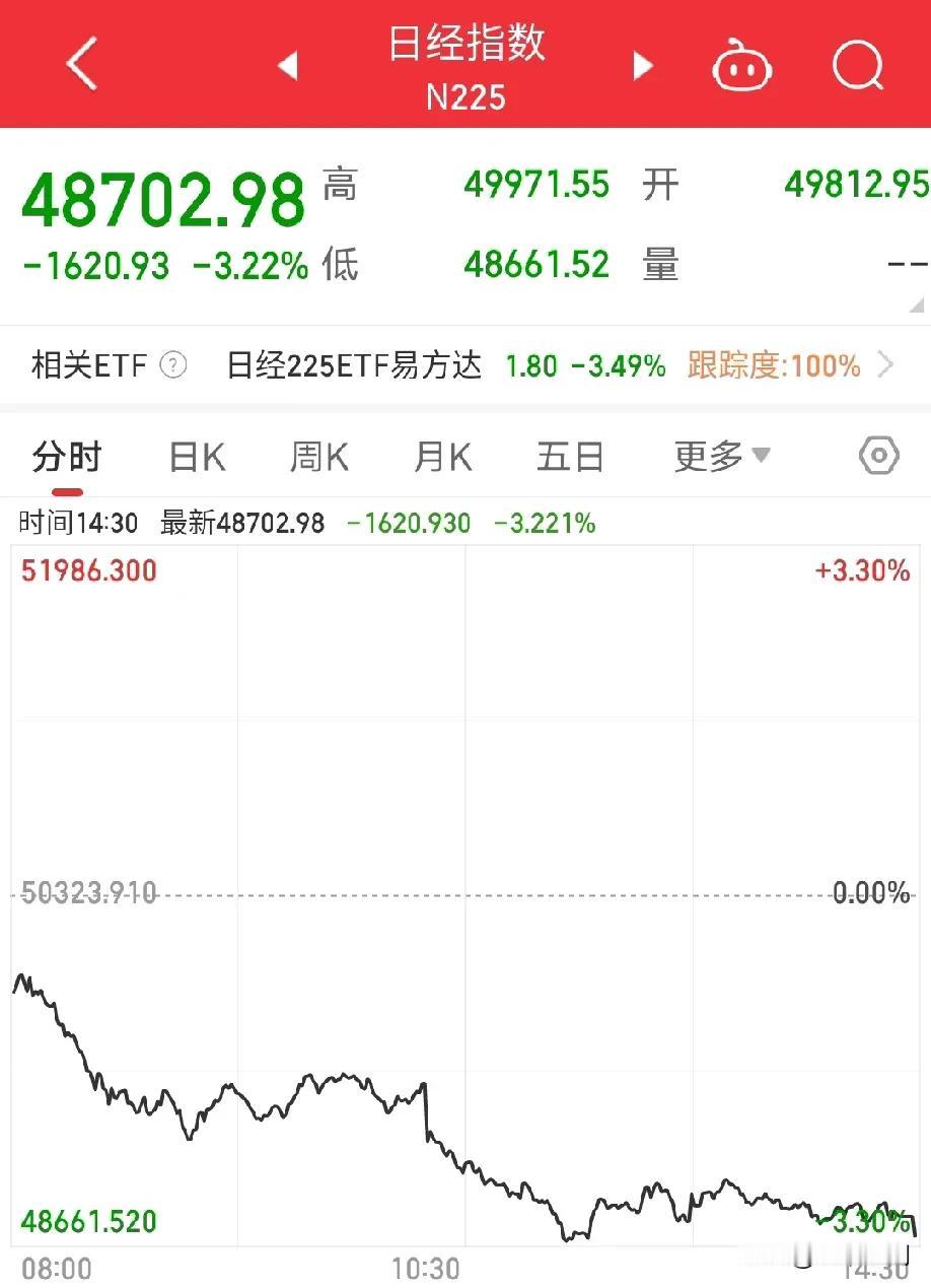虽然很多精日跳出来表演,说花自己钱去日本旅游,不需要谁管,称日本很安全,还有不少反对停止日本电影上映的,反正就是各种表演,但是日经骗不了人,前两天还在52600点,现在已经跌破49000点了,而且日本的旅游股和电影股都暴跌,这说明了精日的消费能力不行啊,那几个精日的表演,虽然很恶心人,但是阻挡不了大趋势,就是会实实在在影响到你的业绩,看看高市早苗还能撑多久!