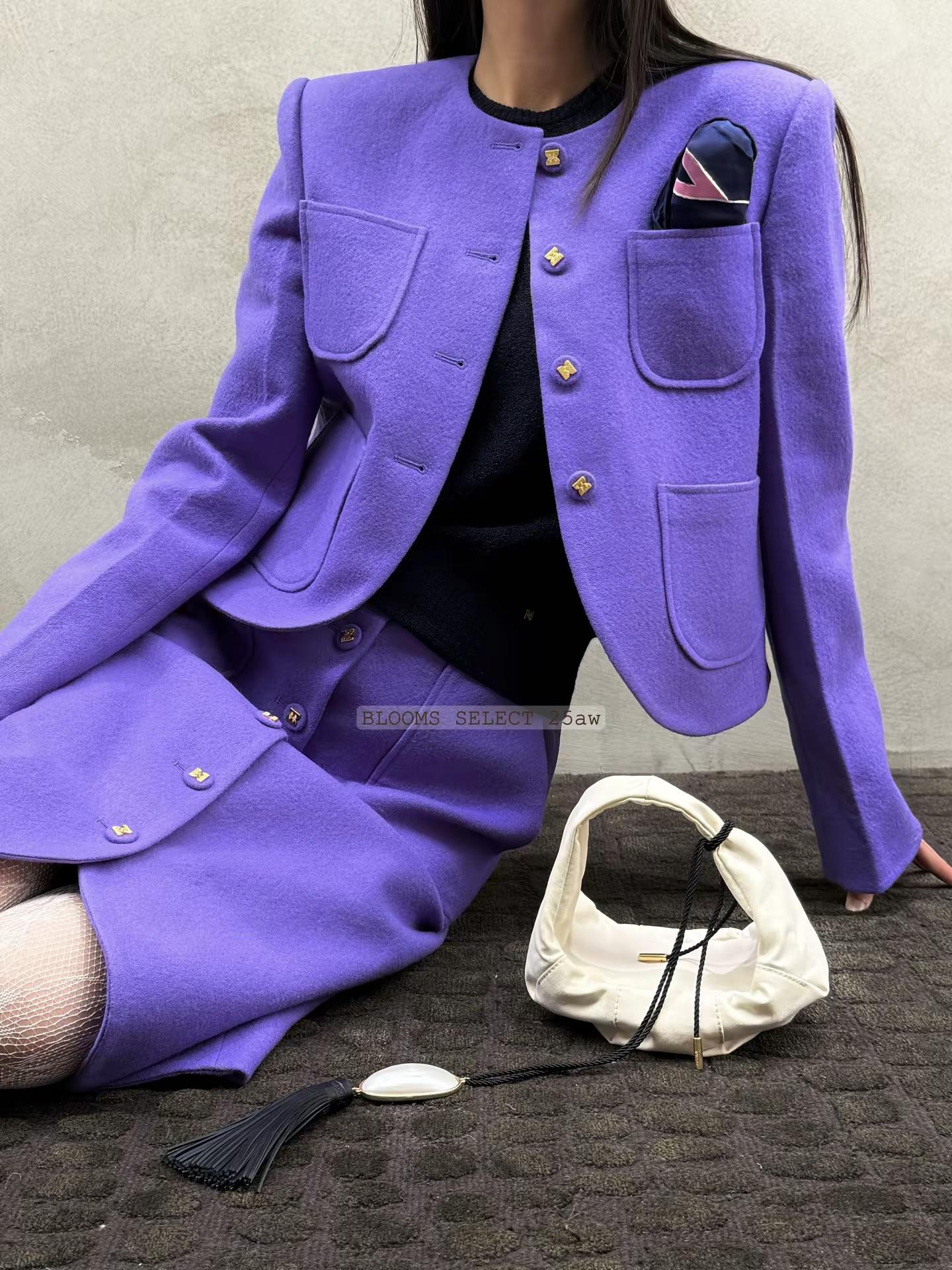 紫色是美女标配💜。 经典剪裁又升级了颜色 又正又显白套装给人的千金感...