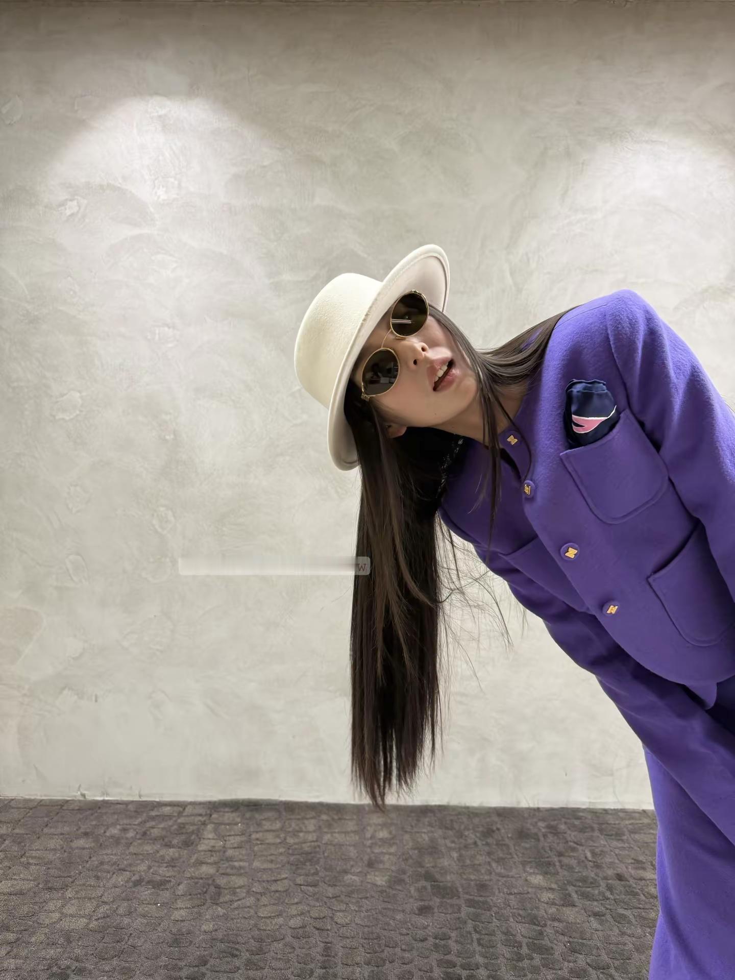紫色是美女标配💜。eenk 经典剪裁又升级了颜色 又正又显白套装给人的千金感和仪式感 准确又克制已经想象降温以后叠穿皮草在外边 进屋后脱掉外套的美艳和惊喜了紫色 套装 制服 千金风