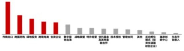 调研显示,“开拓海外市场”作为企业出海首要动因的显著性持续增强。未来三年,东南亚以57%的绝对优势成为中国企业出海“第一增长极”,非洲与中东紧随其后。相较之下,企业对北美(17%)与西欧(16%)等成熟市场的布局更趋谨慎。行业层面,建筑与工程(71%)、医疗保健(67%)及信息技术与软件(65%)行业对东南亚市场前景最为乐观;零售电商(63%)则战略性布局拉美市场;能源与公用事业企业更关注中东及中亚地区(各约30%),体现出就近获取配套资源的布局逻辑。在企业出海模式方面,46%的企业仍采用“传统出口”模式,“跨国并购”(27%)与“绿地投资”(22%)紧随其后,共同构成当前主流路径。而“数字服务出海”(14%)与“生态平台嵌入”(3%)等轻资产、高阶模式占比仍然较低。