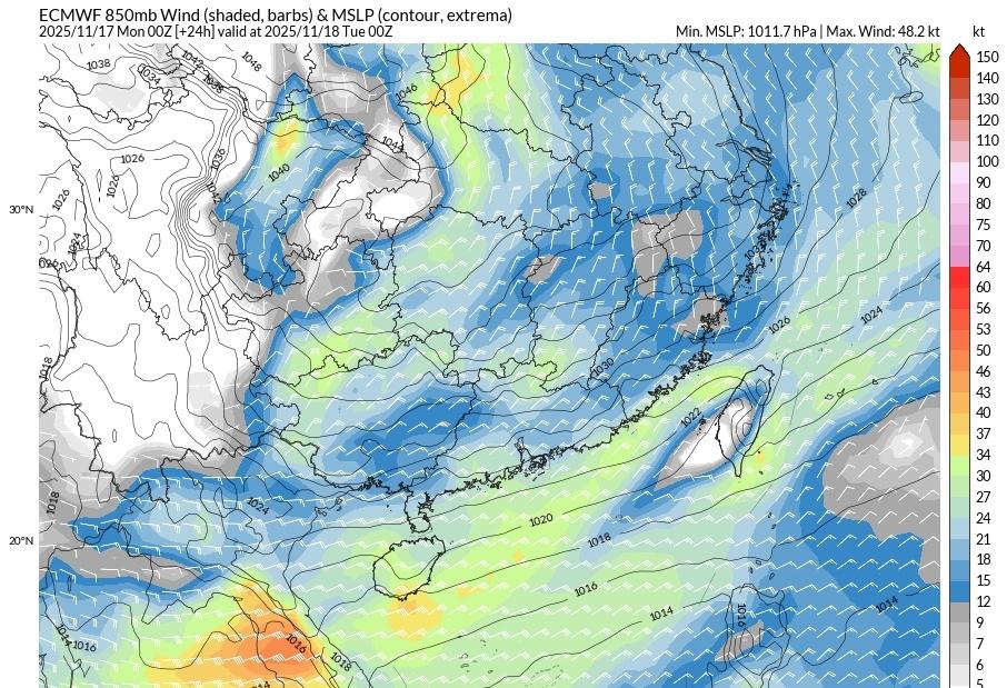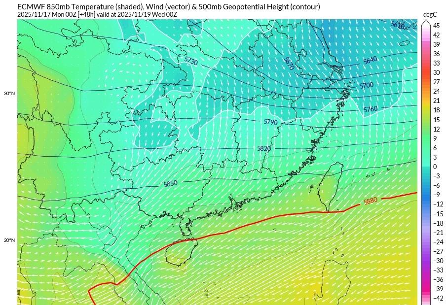 【海南岛即将迎来一轮明显的大风降温天气过程|陵气爱发布重要气象事件提示】 一股实力强劲的冷空气正在持续南下,预计其即将于明天(11月18日)早晨前后开始影响海南岛,将制造一轮明显的大风降温天气过程。 预计此次冷空气过程最低气温将可能出现在11月19日早晨前后,届时海南岛大部地区的最低气温将可能降至15℃左右或以下,中部山区及西北部内陆的局部地区的过程最低气温更是可能降至个位数。 后续,小陵将会密切关注,并将适时启动相应的关注响应。 小陵气象航天时间·陵水气象爱好者 2025年11月17日17时天气 海南冷空气 海南降温