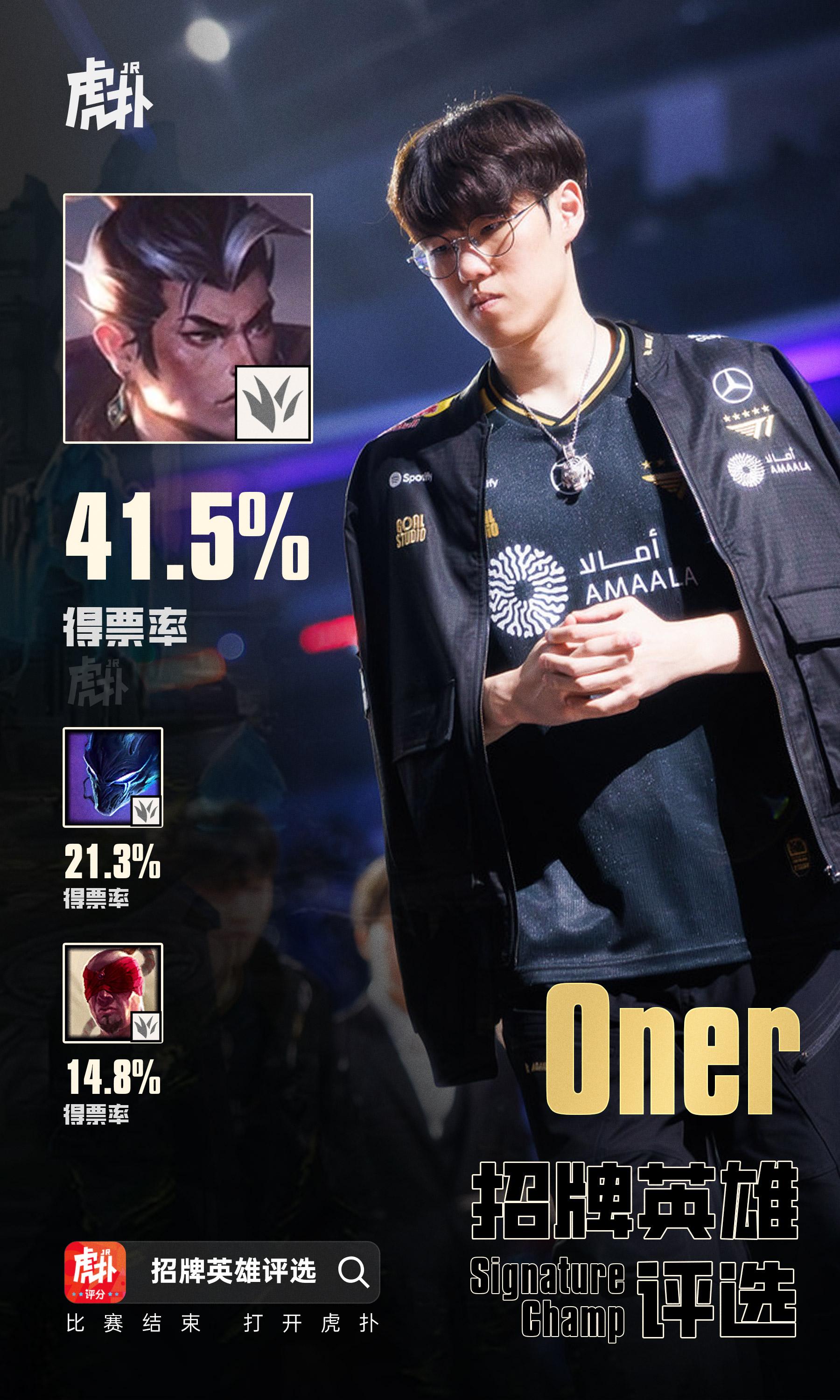 虎扑11月18日讯经过JRs昨日的评选,赵信以41.5%得票率当选Oner招牌英雄。