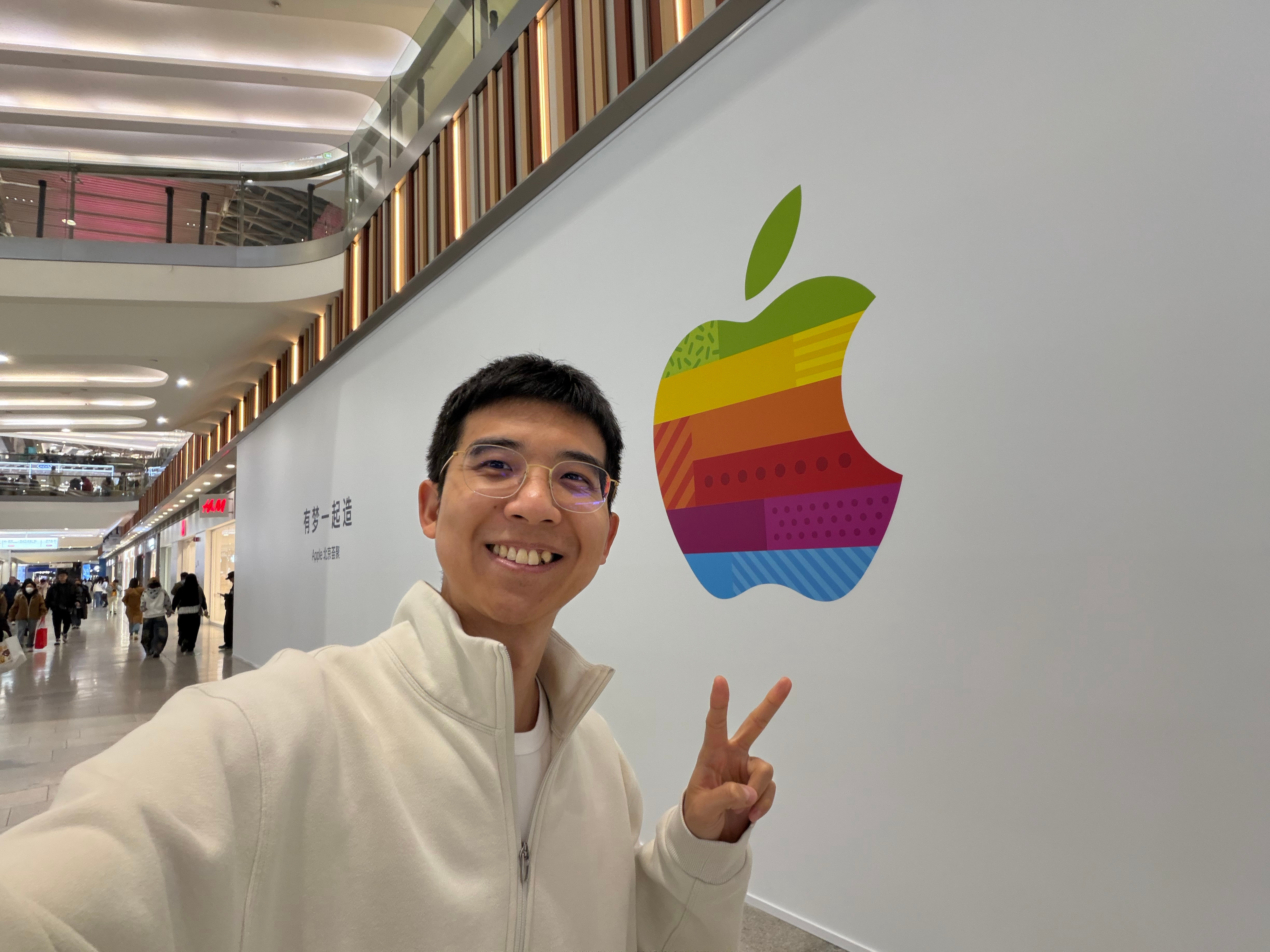 来荟聚吃饭,路过即将开业的 Apple 北京荟聚,合影留念,下个月初就要开业了真