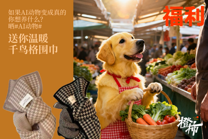 福利:打卡满5次,我们将综合发帖数量和质量,选出6位橙友各送出一份温暖又百搭的千鸟格围巾,让这份AI带来的快乐,变成冬日里的实际暖意。