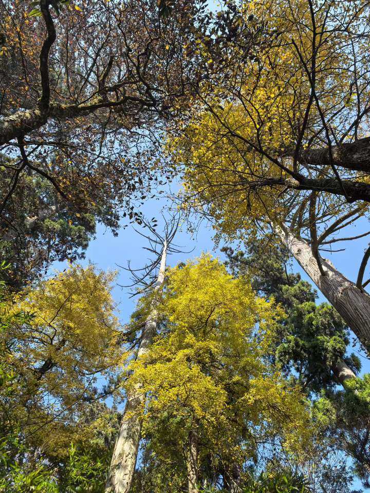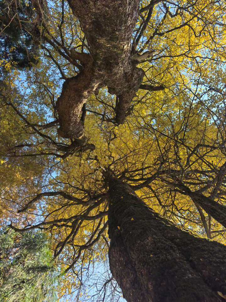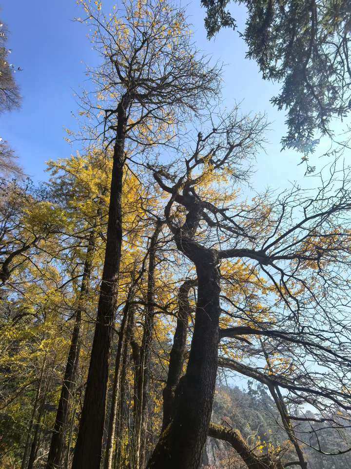 @维尼:秋天里的银杏树林,金黄的叶片配着蓝天,仰头看的时候特别治愈,正是银杏最美的季节,古树林里的秋景很适合休闲放松