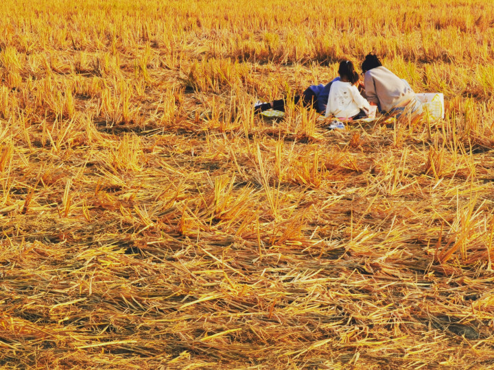 @舒天楚:#秋叶记|铜鉴湖公园,稻梦空间。风又吹起,秋天的大地呈现最美的色彩。稻田丰收后,保持最松弛的瑞士卷姿态;哪吒敖丙申公豹同框,就像孩子的一场梦境。
