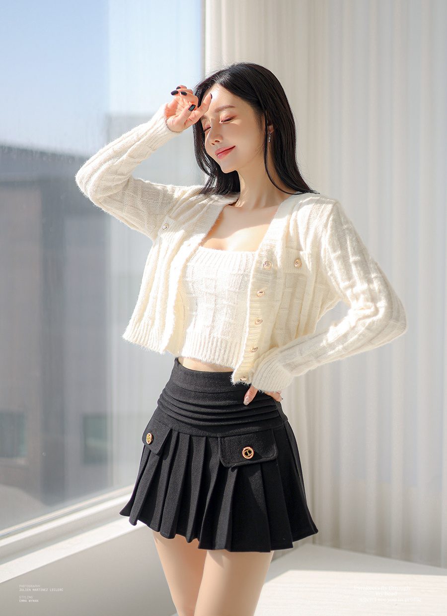 孙允珠灰色针织包臀裙搭配黑色高跟鞋,完美展现女性魅力!