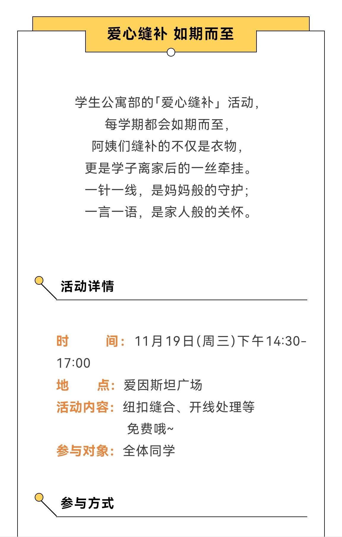 华科学子太幸福了吧!离家在外仍然可以得到慈母般的照顾!宿管阿姨免费为同学们爱心缝补,游子身上衣,不再需要临行密密缝。 华科学子非常受宠!不仅有八块八一只的大闸蟹等着大家吃,管好同学们的胃,还有免费缝补,护暖同学们的身[赞]