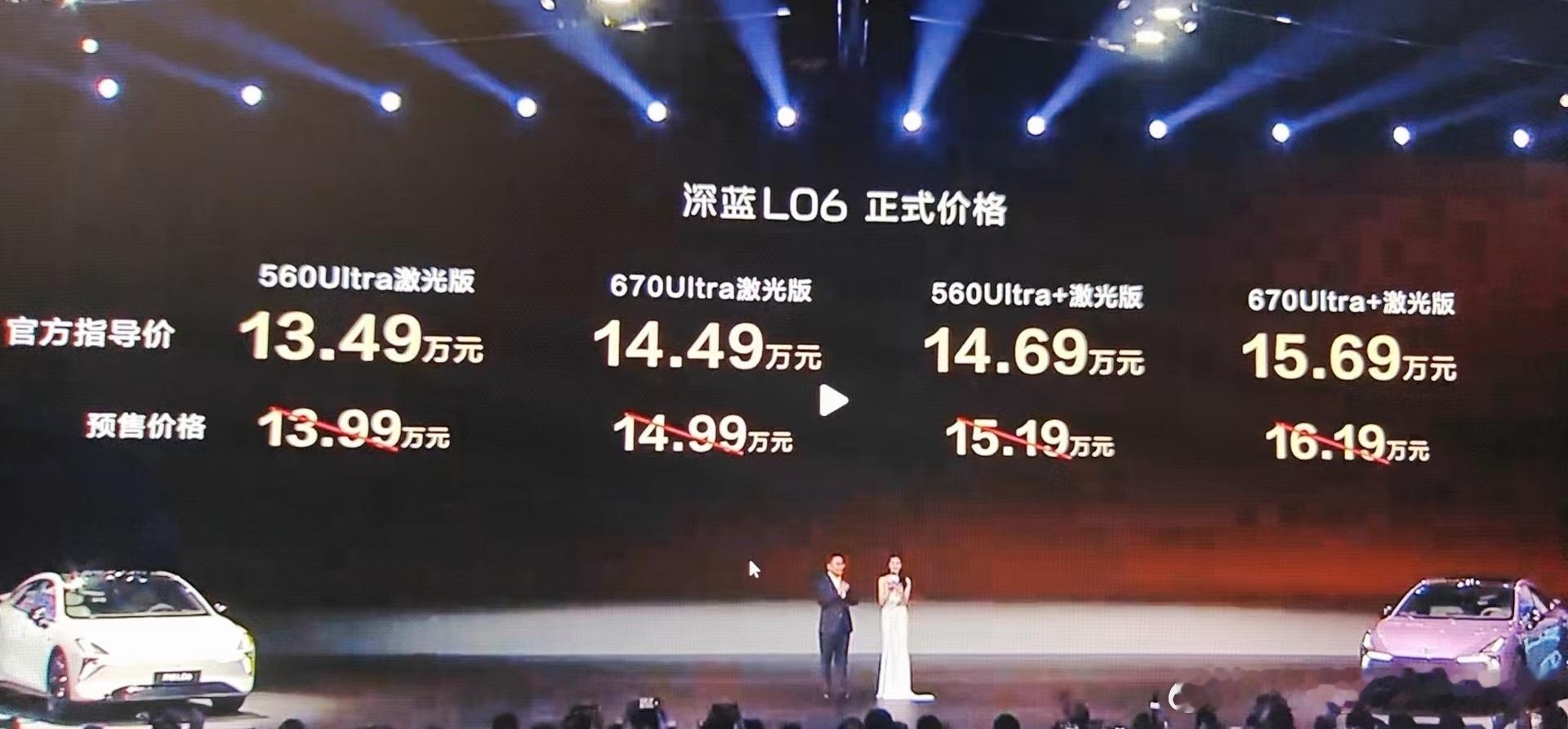 深蓝L06正式发布,限时惊喜价13.29万起,年轻人的首款轿车好选择➕1我们详细来看看,首先深蓝L06车身长宽高为4830/1905/1480mm,轴距达2900mm,内饰方面,配15.6英寸2.5K向日葵旋转屏与50英寸AR - HUD抬头显示,搭3nm天玑座舱芯片。前排座椅标配通风、加热与记忆功能,副驾零重力座椅支持14向电动调节和8种模式按摩,还有1.8平米Low - E全景天幕等配置。辅助驾驶方面,全系标配禾赛激光雷达,搭配26颗传感器,还有两颗地平线J6M芯片,算力达256TOPS。搭载的DEEPAL AD Max系统有高速/城市领航辅助等90项功能,其端到端算法让变道、转弯等动作更连贯,行业首发四图融合实景车道级导航,基础导航+车道级导航+SR渲染+环境重构,精准带路:同方向多路口,准确识别:潮汐车道,清晰提示:最右侧掉头/左转,智能驾驶辅助状态更安全:一屏显示全部导航与驾驶辅助信息,不分屏不分心。动力方面,纯电版搭后置单电机,最大功率200kW、最大扭矩290牛·米,配宁德时代磷酸铁锂电池,56.12kWh和68.82kWh两种容量,对应CLTC续航560km和670km。未来增程版搭载1.5升发动机与电机,增程器最大功率72kW,电机最大功率175kW,匹配28.39kWh电池,纯电续航180km。