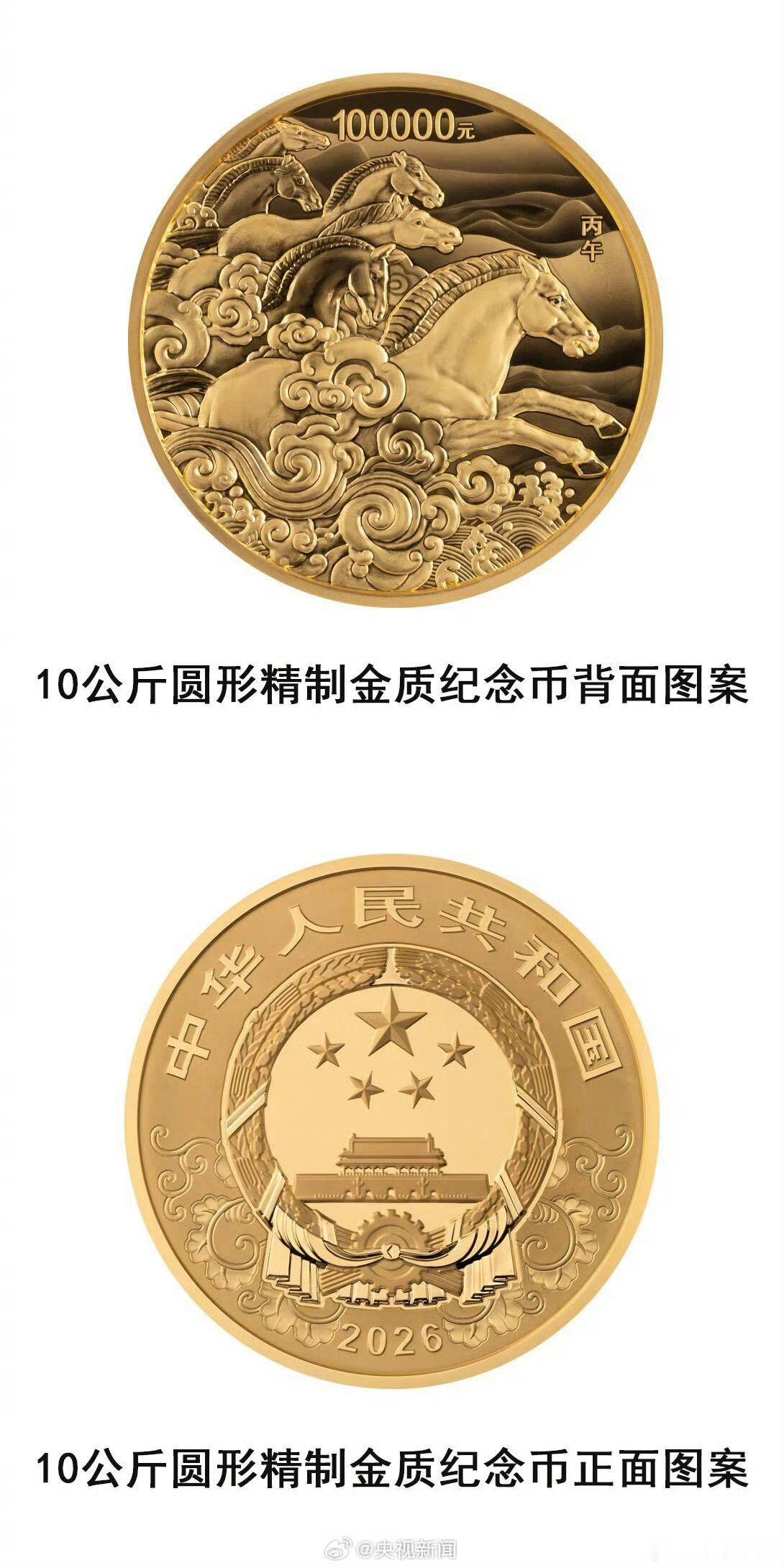 【】中国人民银行定于11月26日发行2026中国丙午(马)年贵金属纪念币一套。该套贵金属纪念币共11枚,其中金质纪念币6枚,银质纪念币4枚,铂质纪念币1枚,均为中华人民共和国法定货币。纪念币的背面图案,有群马奔腾造型、母子马造型、剪影造型、剪纸造型等。(总台央视)