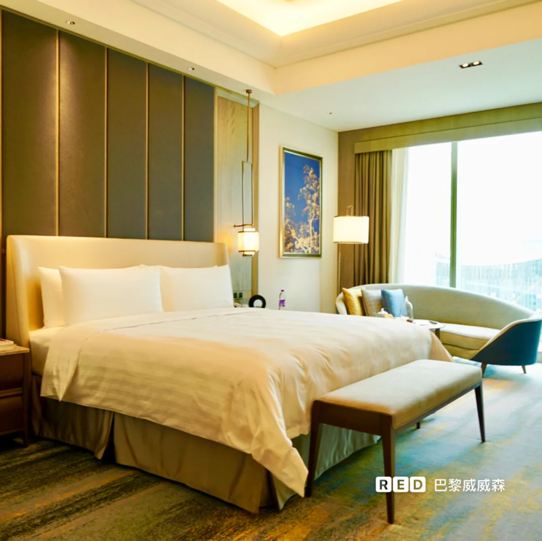 👉此外,酒店还设有16 套现代典雅的服务式公寓。明亮的落地窗外,是旖旎的金鸡湖风光与城市天际线美景。
