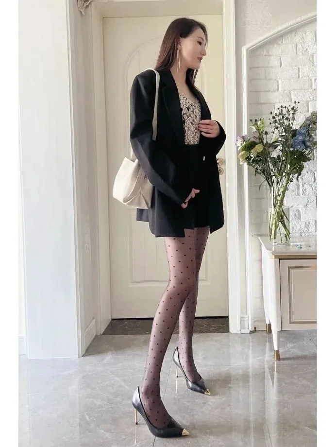 波点黑丝搭配美足高跟,简直是时尚界的性感密码。 就像有位小姐姐,穿了件...