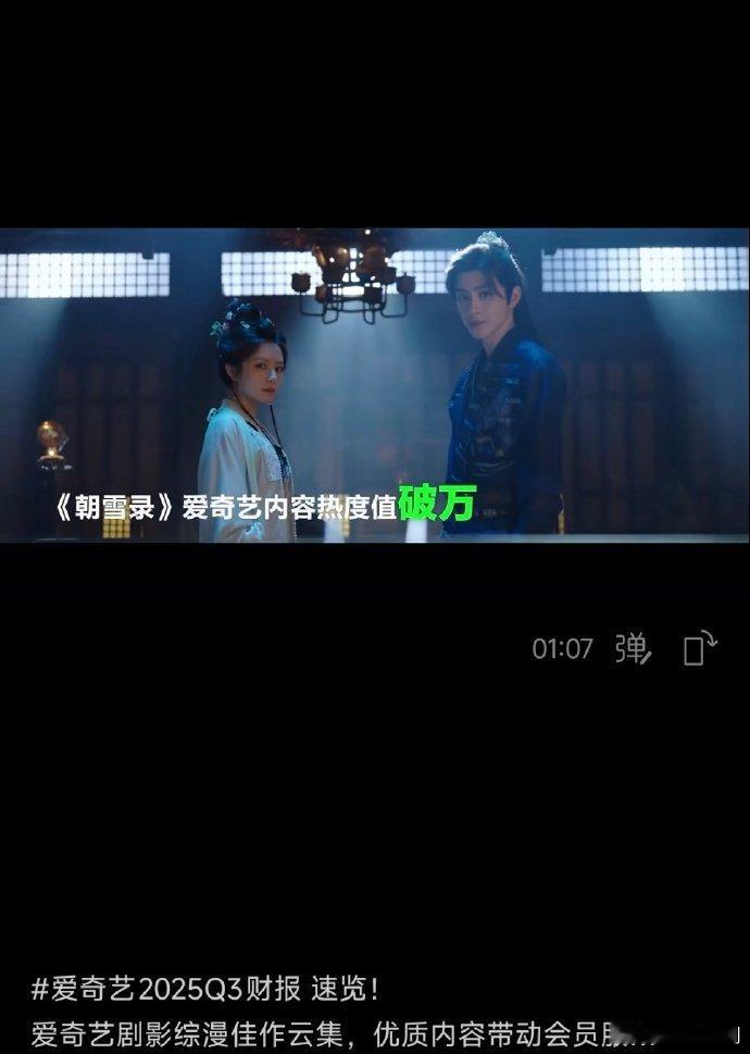 爱奇艺q3财报提到的三部剧集:生万物 朝雪录 不眠日