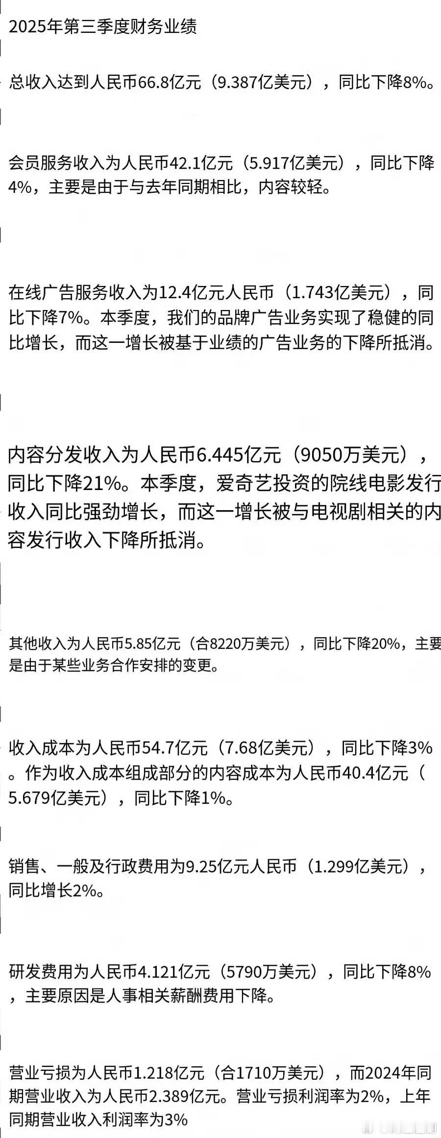 爱奇艺财报出来了!三季度同比扭赢为亏,环比亏损扩大86.2%。财报认证《朝雪录》《不眠日》等剧集表现亮眼,其中《生万物》更成全民爆款——爱奇艺内容热度值破万、2025年单日云合热播榜市占率第一,并创下中央电视台电视剧频道集均收视新高。