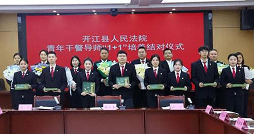 近日,开江县法院举行“青蓝相继·薪火相传”青年干警导师“1+1”培养结对仪式。院领导、资深法官、业务骨干导师及30岁以下青年干警共同参与本次活动。仪式上,审判委员会专职委员陈琳宣读了《开江县人民法院青年干警导师“1+1”结对名单》,青年干警向导师献花,导师分享带教思路,青年干警代表表态发言。此次结对仪式,搭建起经验传承的坚实桥梁,将开江县法院资深法官的专业积淀与青年干警的蓬勃朝气紧密连接在一起。
