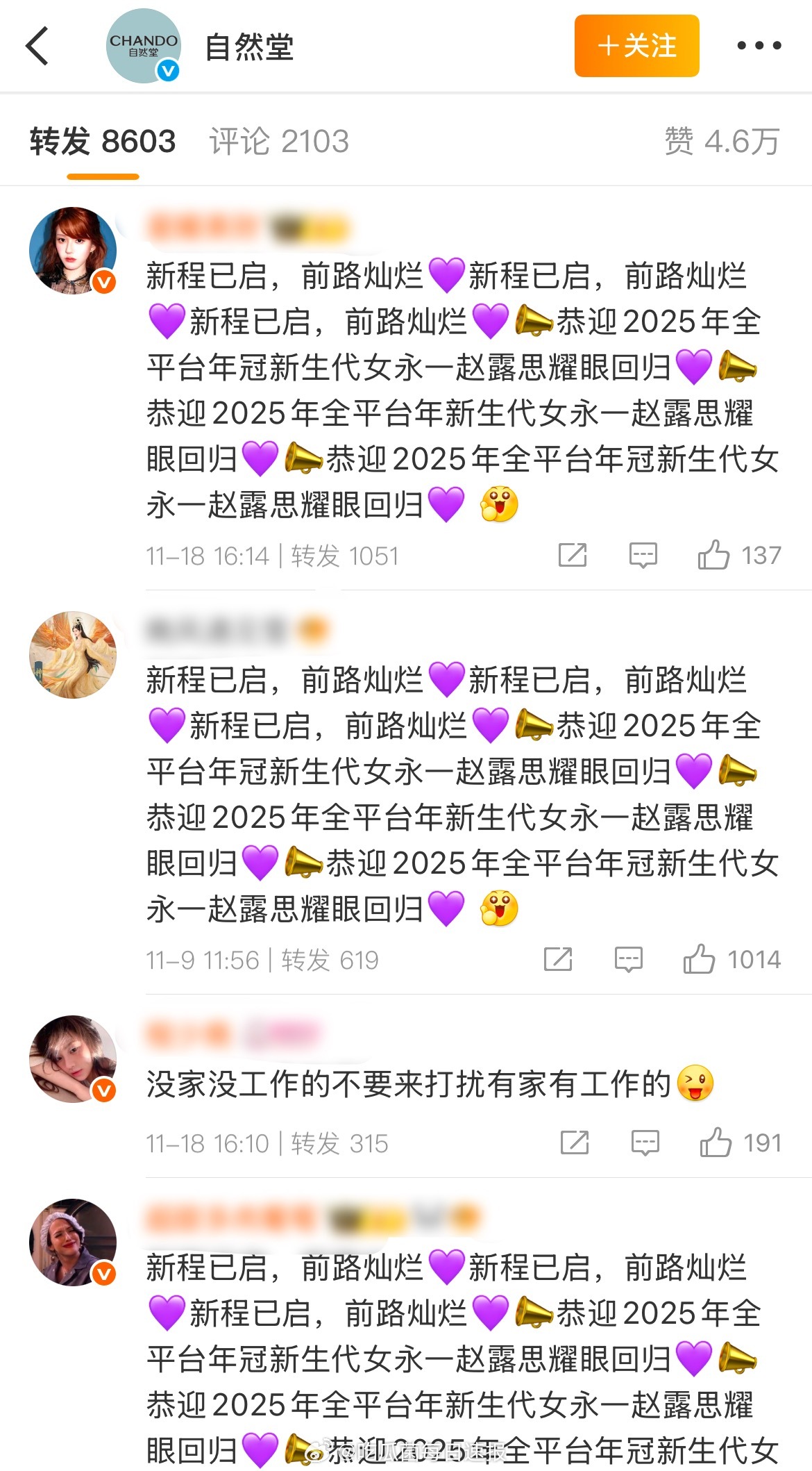 自然堂去年为赵露思发的微博评论区开启了精选,这么突然吗