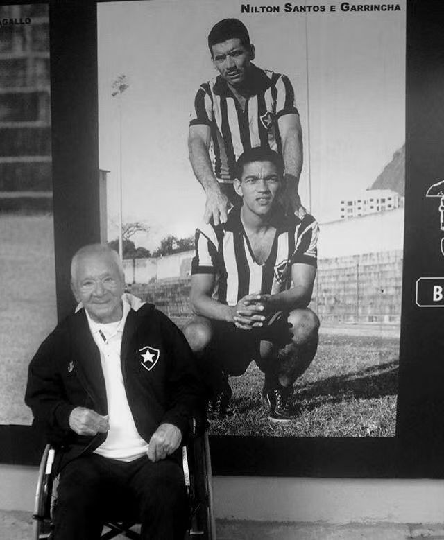 【来自投稿】1962年,与雷米特杯(世界杯冠军奖杯)合照的巴西足球运动员加林查与尼尔顿桑托斯。曼努埃尔·弗朗西斯科·多斯·桑托斯,绰号“加林查”,1933年生于巴西。1953年与博塔弗戈签约,开启职业球员生涯。共出场614次,打入245球。1958、1962年随巴西国家队两夺世界杯冠军,并在1962年世界杯被评为最佳射手(4球)。1983年因肝硬化去世。尼尔顿桑托斯生于1925年,司职后卫,曾效力于博塔弗戈俱乐部,为该俱乐部踢过718场。参加过四届世界杯,1958、1962两获冠军。被国际足联评选为20世纪最佳左后卫P2老年桑托斯与二人合照