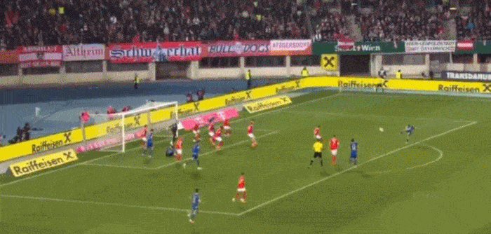 第12分钟,塔巴科维奇抢点攻破了奥地利的球门。