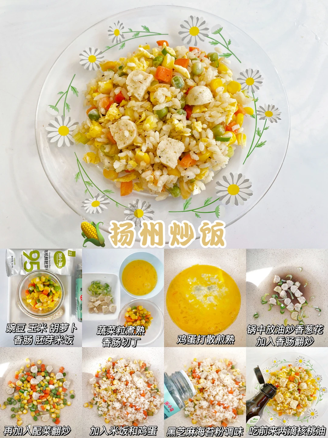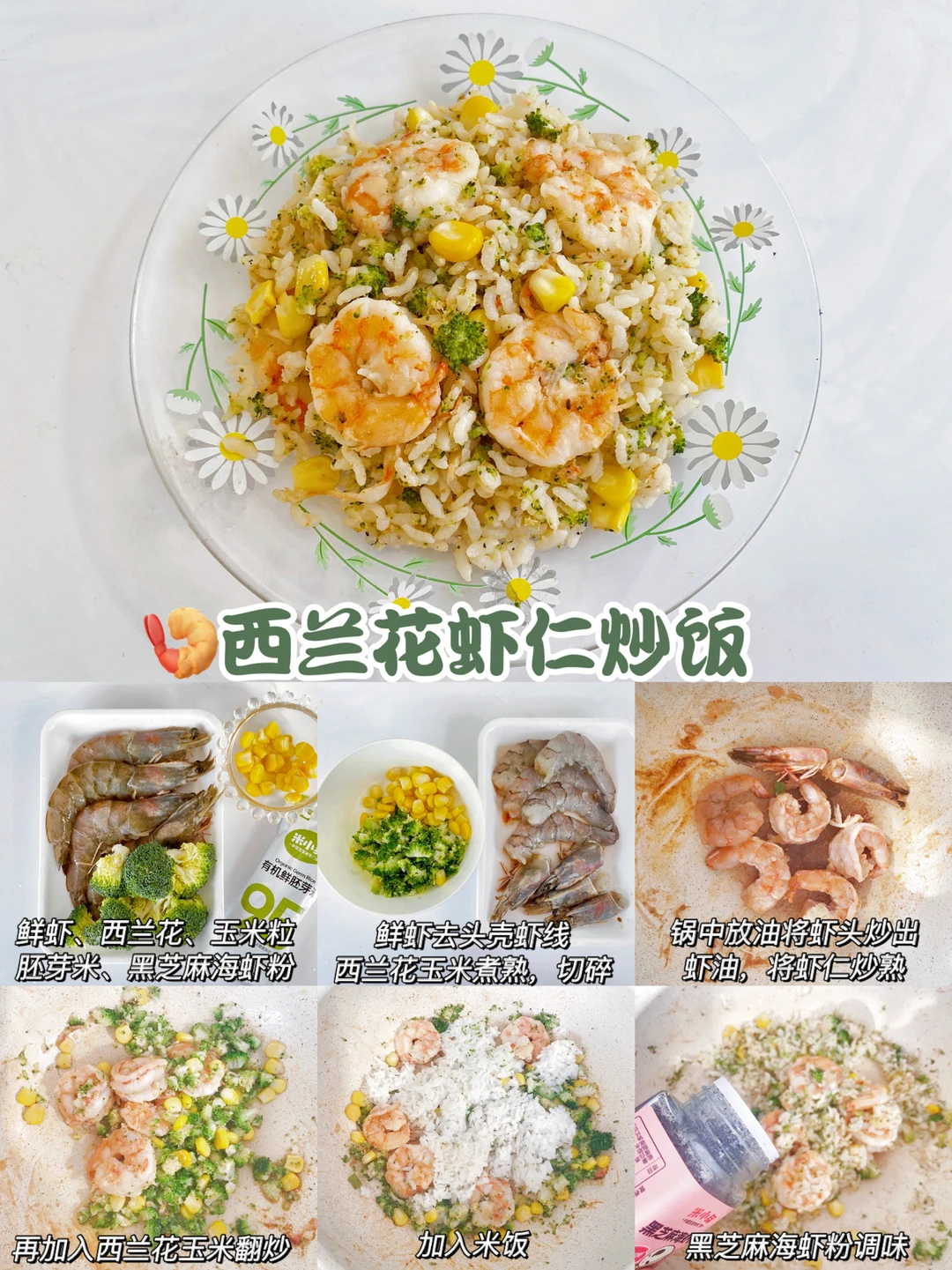 鲜虾、西蓝花、玉米粒、胚芽米饭