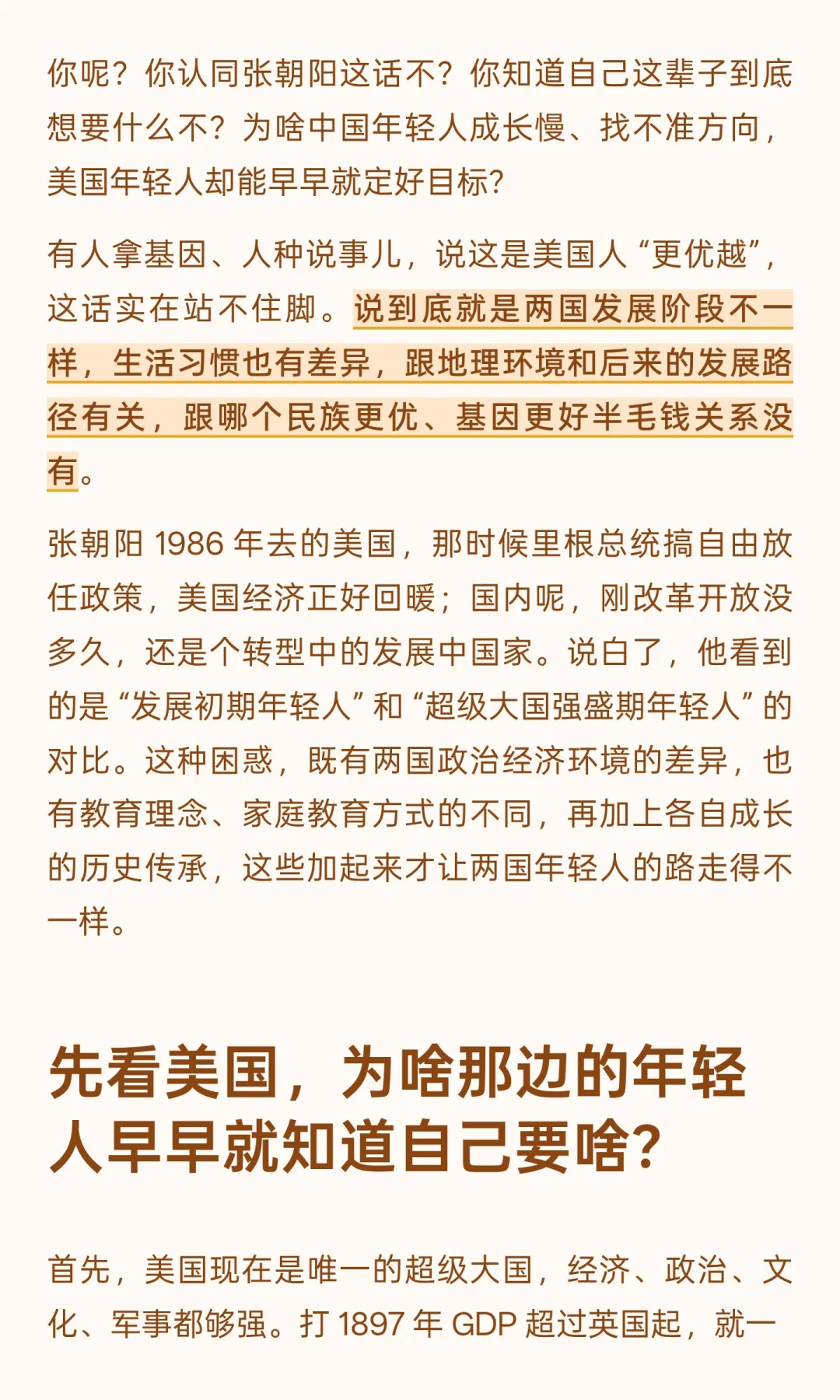 你呢?你认同张朝阳这话不?你知道自己这辈子到底想要什么不?为啥中国年轻人成长慢、找不准方向,美国年轻人却能早早就定好目标?