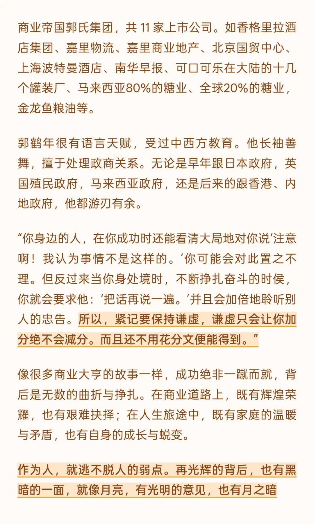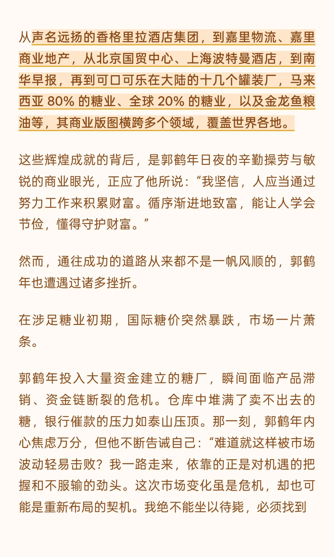 《从糖王到酒店大亨:郭鹤年 99 年商业传奇启示录》,带你看这位 “商业猛人” 如何凭一腔孤勇硬撼老牌糖商,在糖价暴涨暴跌的惊涛里攥紧行业命脉;