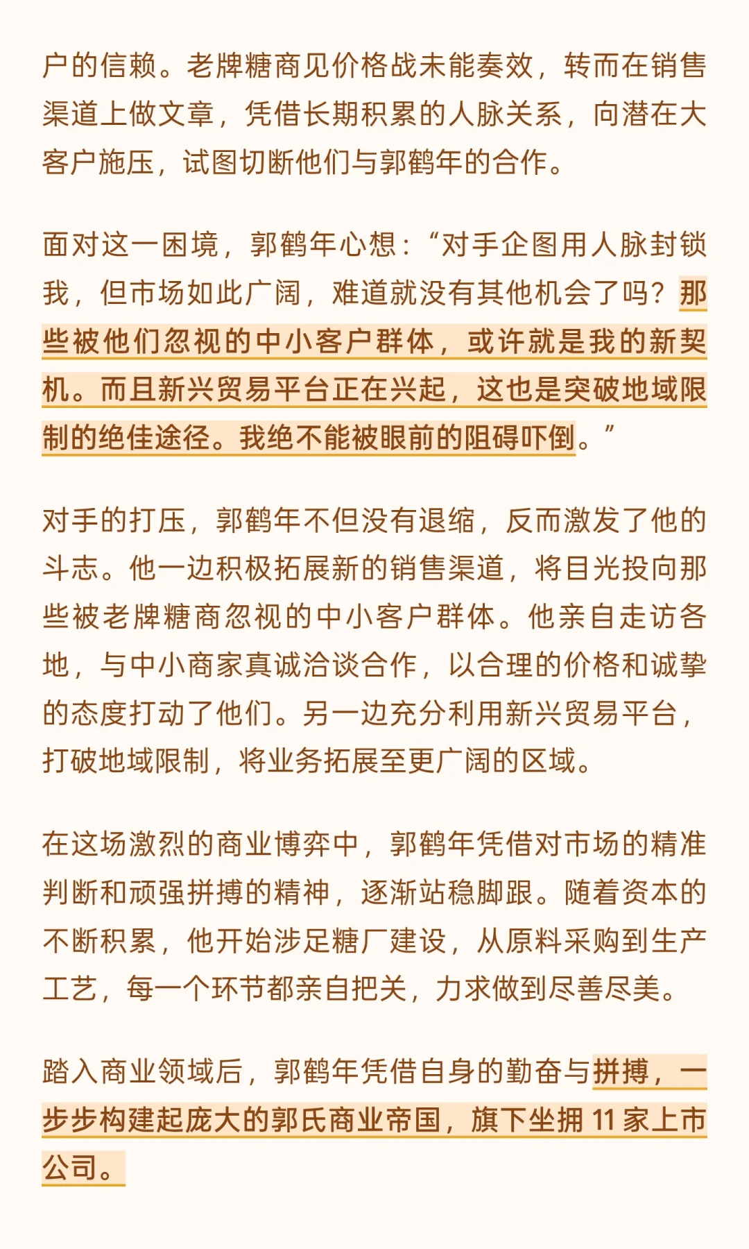 文章中不遮不掩剖开他跌倒时的血与汗,也毫无保留展现他登顶时的清醒与狠劲 —— 没有天生的商业王者,只有敢闯敢拼、在绝境里死磕到底的斗士!跟着
