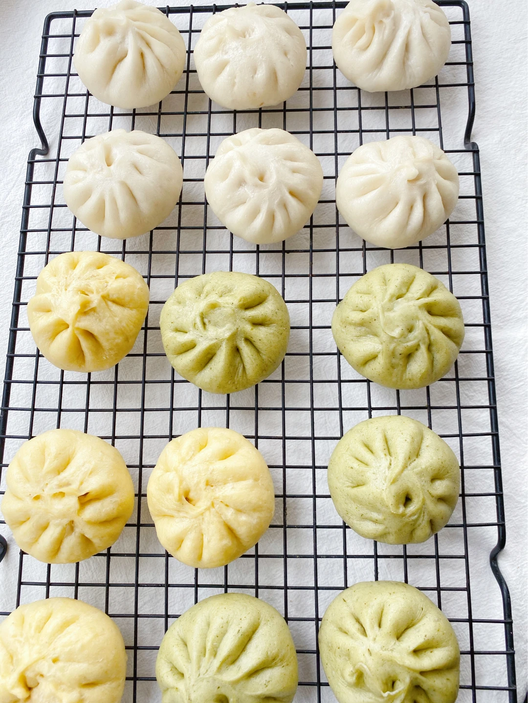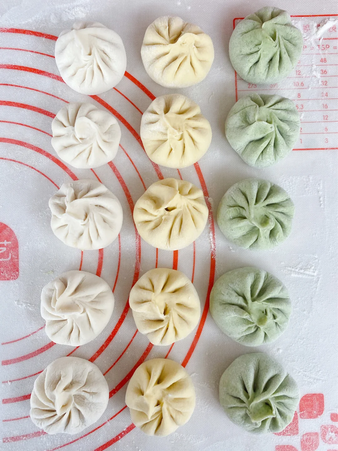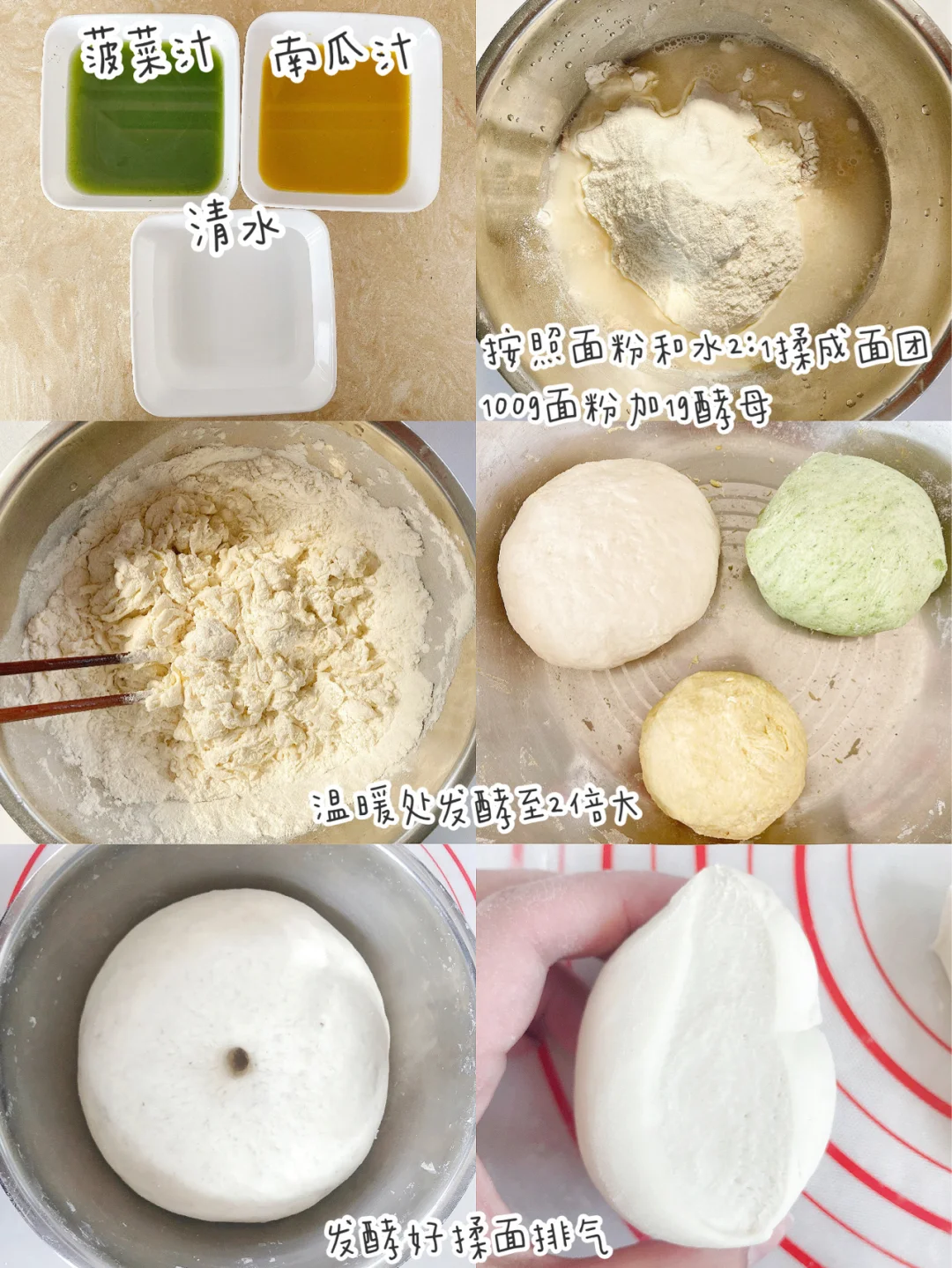包子皮为了拍照好看我用的菠菜汁和南瓜汁和面