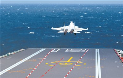 日前,海军福建舰开展入列后首次海上实兵训练。这是歼-15DT舰载机弹射起飞。新华社发(高泽明/摄)