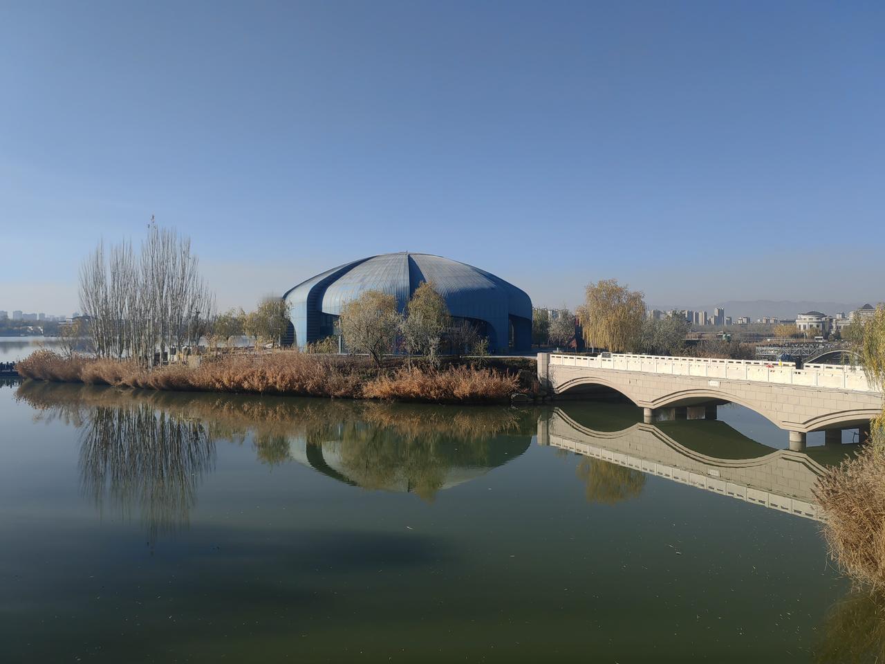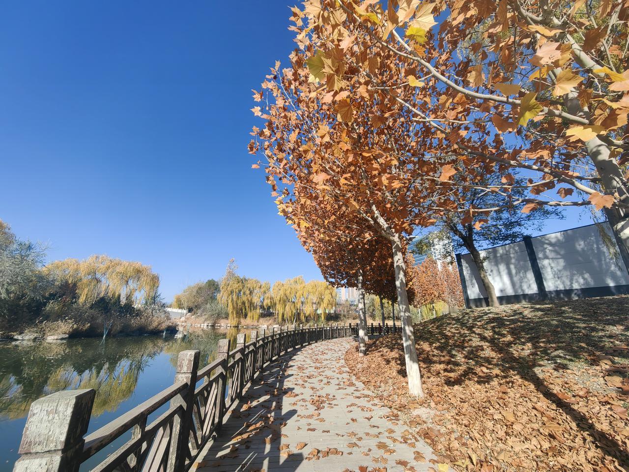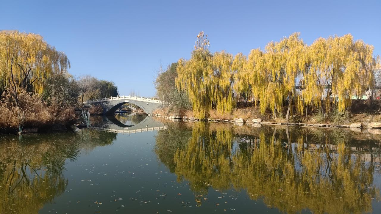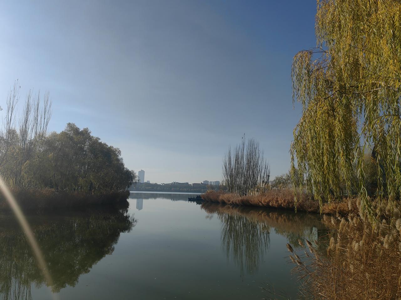 初冬时节,宁夏银川阅海湖就是一幅绝美的画卷。 它位于银川市金凤区,总面积1600公顷,湿地面积达1100公顷,有“银川之肾”“城市绿肺”的美誉。 暖阳下,树叶金黄,洒落地。远处的贺兰山若隐若现,近处的双子座高楼耸立,拱桥如圆月,湖面碧波似翡翠,团团芦苇散落。水鸟不时翻飞,为湖面添了生机。近年来生态变好,更多水鸟来此栖息。 空中俯瞰,金色芦苇与碧蓝湖水相映成画,阳光透过朦胧洒在湖面,反射如镜。湖岸的阅海环湖绿道正在施工。城市建筑与湖光水色交融,“百湖润银川,碧水环城流”的愿景正慢慢实现,真不是江南,胜似江南! 银川阅海湾 银川阅海湖 银川阅海绿道 阅海湖