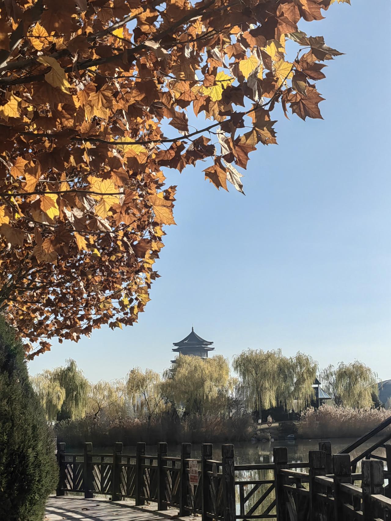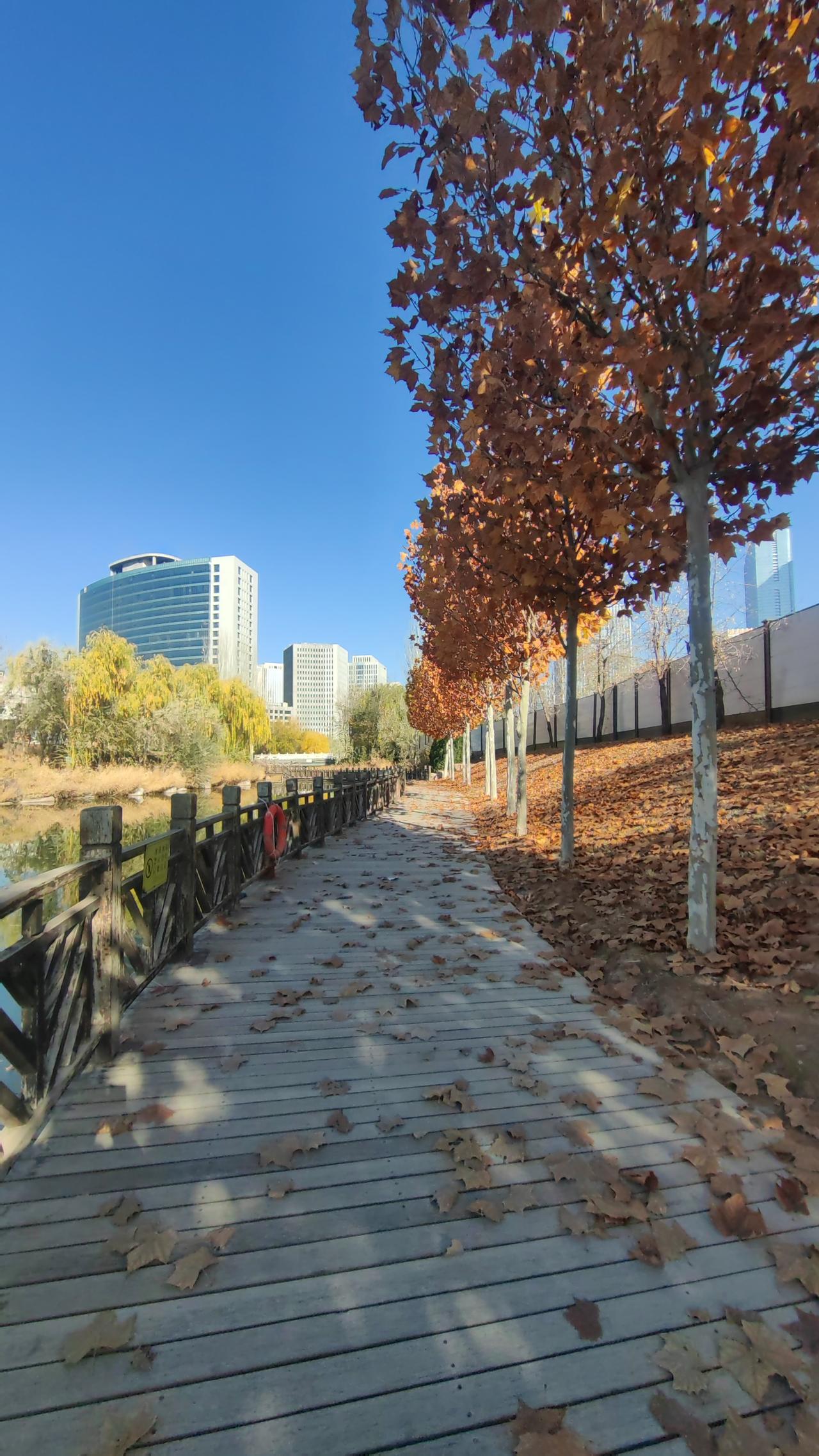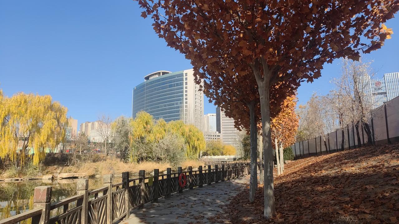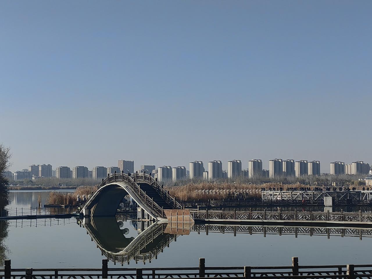 初冬时节,宁夏银川阅海湖就是一幅绝美的画卷。 它位于银川市金凤区,总面积1600公顷,湿地面积达1100公顷,有“银川之肾”“城市绿肺”的美誉。 暖阳下,树叶金黄,洒落地。远处的贺兰山若隐若现,近处的双子座高楼耸立,拱桥如圆月,湖面碧波似翡翠,团团芦苇散落。水鸟不时翻飞,为湖面添了生机。近年来生态变好,更多水鸟来此栖息。 空中俯瞰,金色芦苇与碧蓝湖水相映成画,阳光透过朦胧洒在湖面,反射如镜。湖岸的阅海环湖绿道正在施工。城市建筑与湖光水色交融,“百湖润银川,碧水环城流”的愿景正慢慢实现,真不是江南,胜似江南! 银川阅海湾 银川阅海湖 银川阅海绿道 阅海湖