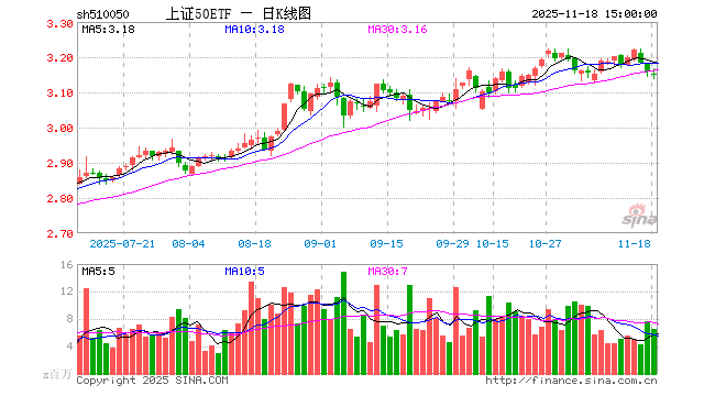 11月18日,上证50ETF(510050)跌0.28%,成交额20.90亿元。当日份额减少1.18亿份,最新份额为573.49亿份,近20个交易日份额减少7.91亿份。最新资产净值计算值为1805.57亿元。